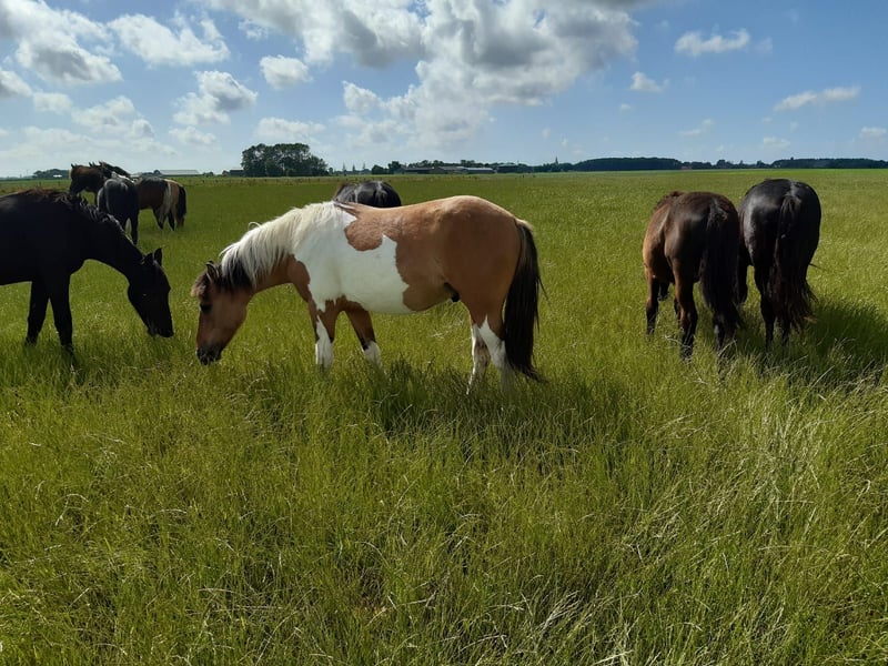 Dieser junge Mann ist wirklich etwas Besonderes! Er ist dunskin (dreifarbig Falbebunt) mit Ahlstrich und wirklich schöner Abzeichnung. Ein echter Hingucker. Er ist auf der Suche nach einem netten, süßen Möhrengeber. Wir kennen seine genaue Abstammung nicht. Wahrscheinlich Deutsches Reitpony x Barock Pinto x Fjord. Wir schätzen, dass er eine Höhe von etwa 1,50 bis 1,55 m erreichen wird. Er kennt das Wichtigste im Pferdeleben: das Herden-ABC. Wir züchten nur und trainieren nicht, daher sind alle unsere Pferde noch völlig grün und noch nicht an das Halfter gewöhnt. Der große Vorteil ist, dass die Pferde in der Herde gut sozialisiert sind, keine schlechten Erfahrungen gemacht haben und man ihnen alles beibringen kann, was man möchte. Unsere Pferde haben und geben viel Selbstvertrauen und lernen schnell. Jedes Jahr haben wir etwa 40 wunderschöne Barock-Pinto- und Friesenfohlen von unserem Familiengestüt in den Niederlanden zum Verkauf. Und auch ältere Pferde (0-13 Jahre), alle noch grün und untrainiert. Wir züchten meistens ohne Stammbuchpapier damit die Pferde bezahlbar bleiben. Bei uns finden Sie bestimmt Ihr Traumpferd. Unsere Pferde wachsen ganz natürlich in großen Herden auf und sind daher sehr gut sozialisiert. Hier führen sie ein traumhaftes Pferdeleben: auf großen Wiesen im Frühling und Sommer. Im Winter in großen Gruppenställen. Ein guter Charakter, cool, kräftig, gesund und lieb sind für uns in der Zucht wichtige Voraussetzungen. Sie finden uns in Tzummarum, in der Nähe von Leeuwarden Niederlande, und wir freuen uns, Sie kennenzulernen. Kontakt: Am besten telefonisch oder per Whatsapp.