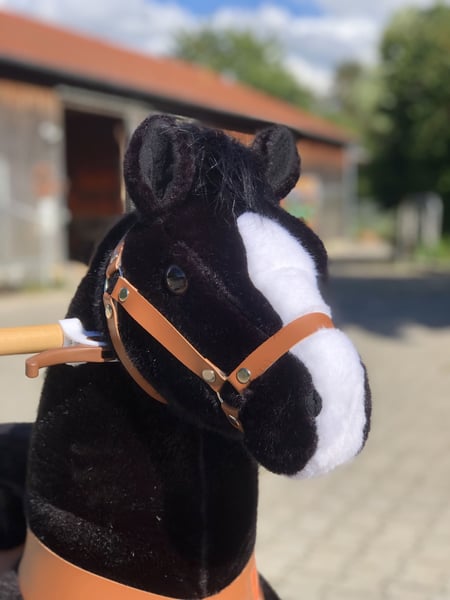 Our pony Blacky fulfills all children's and parents' wishes! He is always calm and composed, well-behaved and easy to handle. He is easy to feed, never sick and doesn't need a farrier. Does not bite or strike. With a back height of 70 cm, children can learn to trot easily, strengthen their muscles and build up their stamina before switching to a real riding pony. The ideal addition for all riding schools to take the pressure off the school ponies and prepare the children for a real pony with lots of fun. This pony is an L pony, we also offer the M pony one size smaller for 299 € incl. VAT and shipping. You are welcome to test ride the pony at our riding school.