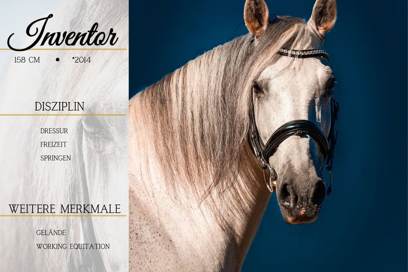 Invator to klacz urodzona w 2014 roku, o wzroście około 158 cm. *Invator* to przepiękny, bardzo dobrze jeżdżący koń wierzchowy, którego można polecić na każdą okazję. Doskonale radzi sobie w lonży i na placu, wykonuje świetne półstruki. W terenie, zarówno solo, jak i w grupie, a także w obcym otoczeniu, zachowuje się niezwykle grzecznie. Jest wygodny w siodle i bardzo łatwy w utrzymaniu kontaktu. Po prostu koń marzeń. Nadaje się również dla młodzieży i mniej doświadczonych jeźdźców. Na nim czujesz się świetnie! KONIECZNIE ZOBACZ JEGO FILM!!! Wychowany w domu i bardzo łatwy w obsłudze. Niezwykły koń pod każdym względem. Ma już spore doświadczenie w różnych sytuacjach. Aktualne wideo znajdziesz tutaj w ogłoszeniu lub pod tym linkiem: https://www.youtube.com/watch?v=Jvkc9j3DGfc Hodowla koni Dederichs – Twój partner w zakupie konia Kontakt i dostępność: Zapytania prosimy kierować wyłącznie telefonicznie pod numer 0173/9792139 Poniedziałek – piątek: 09:00 – 18:00 Sobota: 09:00 – 15:00 Niedziela: dzień wolny Śledź nas na mediach społecznościowych! Poznaj naszą codzienność z końmi na Instagramie, TikToku i Facebooku pod nazwą Pferdehandlung Dederichs Rabat: Przy natychmiastowym odebraniu swojego nowego konia marzeń otrzymasz rabat od 5% do 10% Próba jazdy i prezentacja: • Próba jazdy: 30 € za konia (max. 2 jeźdźców), kwota ta zostanie odliczona od ceny zakupu • Święta: jazda próbna 50 € • Prezentacja przez naszych jeźdźców: 25 € za konia (prowadzenie, praca na ziemi itp.) Badanie przedzakupowe i transport: • Większość naszych koni ma już przeprowadzone badanie kliniczne (AKU) • Oczywiście można przyprowadzić własnego weterynarza • Chętnie zorganizujemy badanie • Z przyjemnością pomożemy również w transporcie do nowego domu Inne konie na sprzedaż: W naszym stadzie dostępne są także inne konie, które jeszcze nie są online. Jeśli Twój wymarzony koń jeszcze nie jest w ofercie, nie wahaj się z nami skontaktować. Ważne informacje: • Podane wymiary są szacunkowe i nie zostały dokładnie zmierzone • Wszystkie opisy są subiektywną oceną sprzedającego i nie stanowią gwarancji cech konia