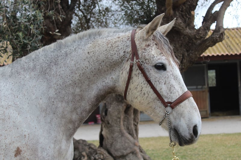 Fandango tiene un súper carácter es muy cómodo y tiene mucha facilidad en los trabajos laterales ,trabaja en pista tres días a la semana y el resto sale a pasear o trabaja pie a tierra o cuerda ,súper fácil para cargar y de manejo ,va barefoot desde hace muchos años . Puede ir a pasear solo o con más caballos ,se puede montar con filete o filete y bocado Es un cruzado de pre con lusitano