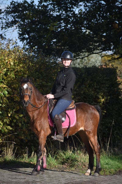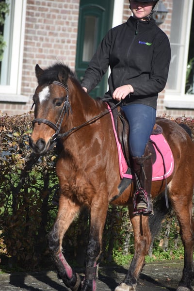 Milstreet Brown Diamond is een ontzetten goudeerlijke, lieve C pony . Hij is geboren 4 mei 2007 en ca 135 m hoog. Het meisje op het filmpje is lang, en toch misstaat ze niet op hem, maar wij achten hem hier braaf genoeg voor een kind. Hij heeft een volle stamboom van Sky King x Sunbeam Vulcan x Wavery Boy. Diamond is totaal vrij van gebreken en een schat van een pony. Superlief hier, zowel in de omgang als in de wei, op straat, in de trailer en in de bak. Een echte , lieve leerpony die ook het bos kent. Prijs: 1950,- incl. zadel en compleet hoofdstel.