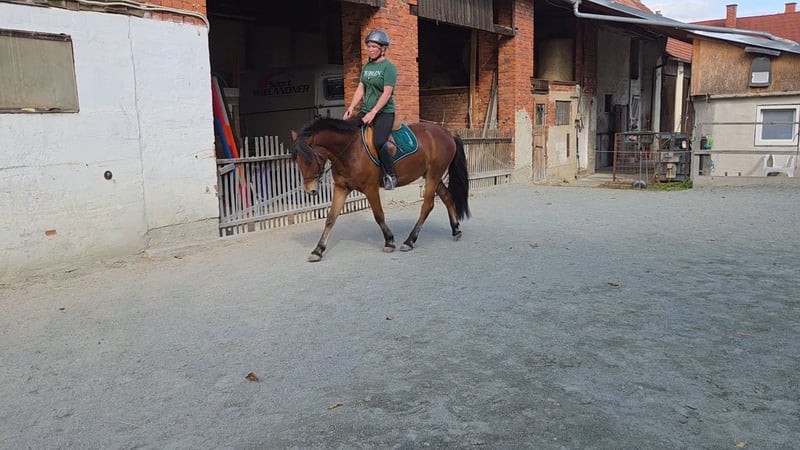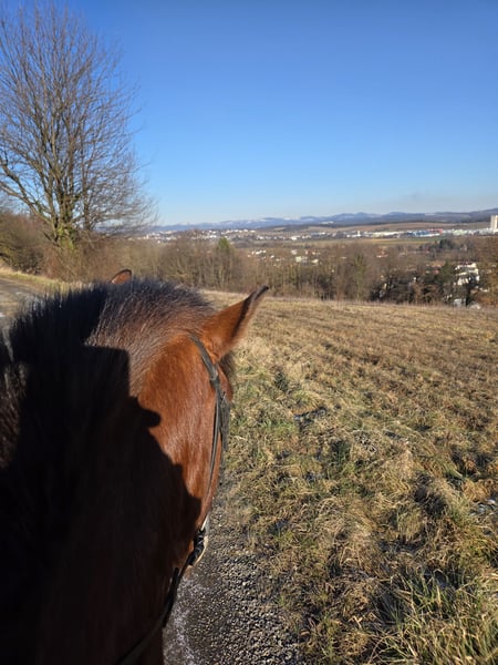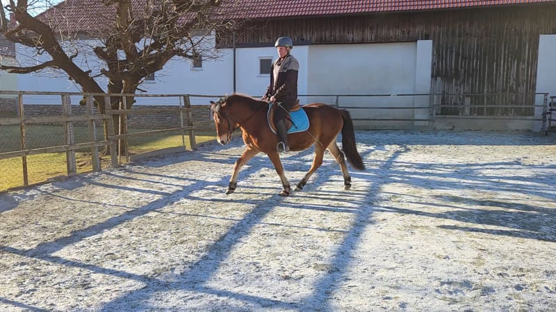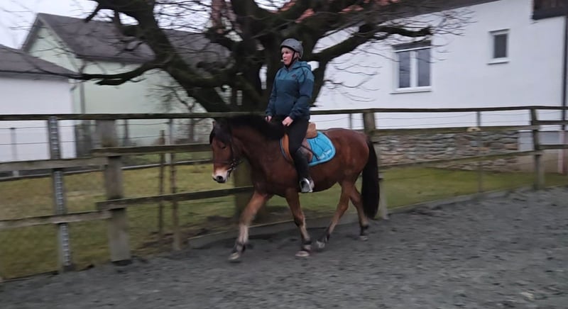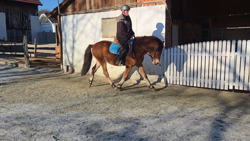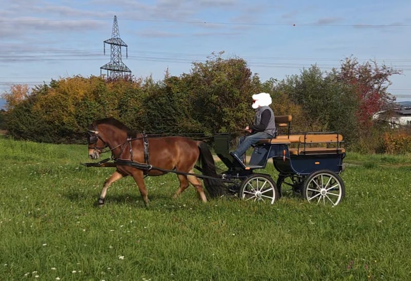 Leider geb ich meinen lieben Ponywallach weit unter dem Wert ab, aufgrund von Hausumbau. Er wird im September 4 Jahre. Er wurde bereits paar mal in der Kutsche gefahren, wo er sich sehr lernbereit zeigt. Dasselbe gilt für das Reiten. Er wurde im Oktober von uns selbst eingeritten. Er war von Anfang an motiviert mit ruhigen Grundcharakter bei der Arbeit. Ich kann alleine aufsteigen ohne das er wegrennt. Ebenso bis jetzt keine Unarten wie steigen oder buckeln...auch wenn er ( bedingt durch Baustelle) mal eine längere Stehpause hat. Er kennt die 3 GGA im Viereck sowie ausreiten alleine und mit anderen Pferden. Er ist kein Typ der unterm Arsch wegzischt wenn mal die Gerte ankommt oder sonstiges passiert. Er mag es wenn sich jemand mit ihm beschäftigt und mit ihm arbeitet. Da er jung ist benötigt er natürlich weitere Ausbildung....bisher hat er wirklich sehr gutes Potenzial gezeigt ein toller Wegbegleiter für groß/ klein zu werden. Seine Zähne wurden vor ca 1.Woche gemacht, ebenso entwurmt und geeimpft ist er natürlich auch (...das impfen gefällt ihm jedoch gar nicht) Aufgrund von Hausumbau hab ich mich nun entschließen müssen, 2 von meinen 3 Pferden abzugeben. Rufus deckt sowohl kleine als auch größere Reiter gut ab. Infos gerne per PN.