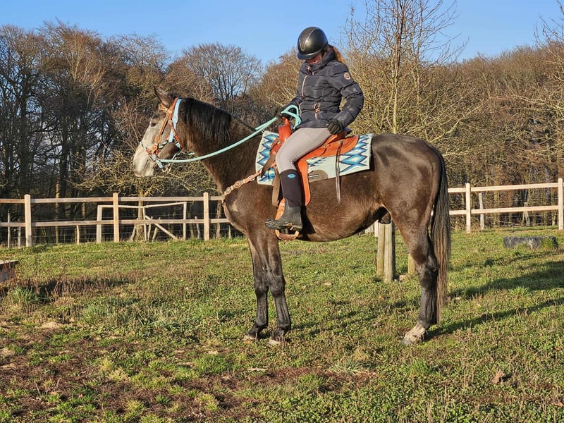 Baro – Poney bai, hongre, gentil, sociable et curieux d'apprentissage Âge : 4 ans (né en 2022) Taille : environ 1,60 m Prix : AKU : disponible ✨ Description : Baro est un magnifique hongre bai avec une robe d'apfelschimmel, doté d’un caractère très amical et ouvert. Il se montre sage, proche de l’humain et particulièrement câlin au quotidien. En tant que jeune hongre, il est curieux, attentif et toujours agréable à manipuler. Il a déjà été monté en selle et souhaite faire plaisir à son cavalier. Baro travaille avec motivation, montre une grande soif d'apprendre et adopte une attitude positive envers le travail. Malgré son jeune âge, il est facile à gérer. Un jeune partenaire prêt à découvrir le monde avec son humain. 🐎 Parfait pour : Des cavalières et cavaliers à la recherche d’un jeune hongre sympathique, sincère et motivé. Adapté pour les loisirs, la formation continue et une utilisation polyvalente. Idéal pour ceux qui aiment continuer à développer un jeune cheval. 🩺 Nos chevaux sont régulièrement : – vermifugés – soignés par le maréchal-ferrant – contrôlés osteopathiquement 🛍 Boutique : Selle western, bridons & accessoires 🚛 Transport et équipement disponibles à prix avantageux sur demande Notre service : ✅ 3 mois de droit d’échange ✅ Essai à 35 €, chaque cheval supplémentaire à 25 € (déduit lors de l’achat le jour même) ✅ Réduction immédiate de 100 € en cas de retrait ou transport le même jour ✅ Conseils personnalisés et honnêtes 📞 Pour toute demande, uniquement par téléphone : 0171 – 4001968 🕗 Ouvert tous les jours de 8h à 20h ⚠️ Pas d’e-mails ni de WhatsApp ⚠️ Toutes nos informations sont données sans garantie