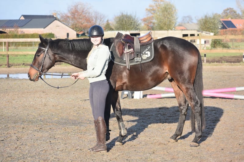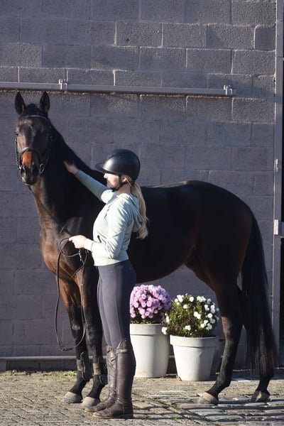 Bloedmooie, SUPERbrave, correcte rijpaardruin Deze geboren Fransman heet Daytona Diamond. Zijn vorig baasje gunde hem ons . Het is werkelijk een plaatje en dat van binnen en van buiten! Het is een geboren galopeur. Hij heeft nooit gekoerst en is nooit op een renbaan geweest. Hij heeft 3 zeer ruime, gedragen gangen. Is voor meerdere takken van de sport geschikt. Ons inziens ook braaf genoeg voor de recreatie! We konden bij binnenkomst meteen op hem wegrijden. Hij is geboren 21-02-2022 , nu ca 165 m hoog en heeft een volle stamboom van : Cloth of Stars x Montjeu x Eagle Eyed. Diamond is wat je noemt een bloedmooi paradepaardje die wacht op een lieve baas waar hij een geweldige toekomst mee gaat hebben! Zijn vorig baasje wil graag contact houden met een nieuwe eigenaar en ze schrijft : “Diamond is Leergierig, lief, een knuffelpaard, mens+ paardgericht, sociaal en braaf en hij houdt van poetsen en aandacht. De reden van verkoop is dat 4 paarden toch te veel zijn. Hij verdiend meer aandacht en rijden.” Hij is met buitenrijden hier superbraaf . Hij gaat bij ons in zijn eentje het erf af en hup de straat op , heel nuchter . Is onlangs door de tandarts behandeld, in bezit van een recent rapport. Prijs € 6450,- incl. merkzadel en compleet hoofdstel