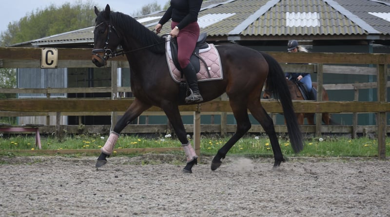 Bloedmooie, SUPERbrave, correcte rijpaardruin Deze geboren Fransman heet Daytona Diamond. Zijn vorig baasje gunde hem ons . Het is werkelijk een plaatje en dat van binnen en van buiten! Het is een geboren galopeur. Hij heeft nooit gekoerst en is nooit op een renbaan geweest. Hij heeft 3 zeer ruime, gedragen gangen. Is voor meerdere takken van de sport geschikt. Ons inziens ook braaf genoeg voor de recreatie! We konden bij binnenkomst meteen op hem wegrijden. hij is 4 jaar oud en ca 165 m hoog en heeft een volle stamboom van : Cloth of Stars x Montjeu x Eagle Eyed. Diamond is wat je noemt een bloedmooi paradepaardje die wacht op een lieve baas waar hij een geweldige toekomst mee gaat hebben! Zijn vorig baasje wil graag contact houden met een nieuwe eigenaar en ze schrijft : “Diamond is Leergierig, lief, een knuffelpaard, mens+ paardgericht, sociaal en braaf en hij houdt van poetsen en aandacht. De reden van verkoop is dat 4 paarden toch te veel zijn. Hij verdiend meer aandacht en rijden.” Hij is met buitenrijden hier superbraaf . Hij gaat bij ons in zijn eentje het erf af en hup de straat op , heel nuchter . Is onlangs door de tandarts behandeld, in bezit van een recent rapport. Prijs € 6450,- incl. merkzadel en compleet hoofdstel