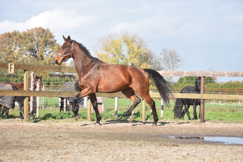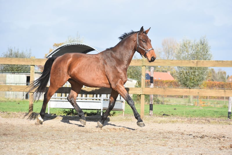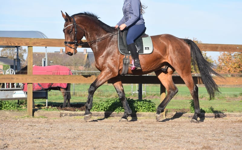 Direkt vom Züchter durften wir ihn zusammen mit seinem Stallgefährten Valesco vd Melane übernehmen. Lernen Sie Voltaire von der Melane kennen, einen imposanten und eleganten 4,5-jährigen Wallach von ca. 1,75 m mit ausgezeichneter Abstammung: Querido VG x Concorde Z x Tresor D 12. Ein Pferd mit viel Zukunft, geeignet für den Sport (Dressur + Springen) sowie für die Freizeit. Voltaire ist wunderschön gebaut und verfügt über viel Ausstrahlung und Elastizität. Er ist freundlich, fröhlich und positiv im Wesen. Unter dem Sattel zeigt er seine natürliche Balance und seinen kooperativen Charakter. Er sucht die Verbindung zum Reiter und ist angenehm zu reiten. Im Umgang ist er stark, aber ein echtes Schmusepferd. Nüchtern, anhänglich und immer offen für viel Aufmerksamkeit. Er ist hier und zuvor gut im Verkehr und am Anhänger ausgebildet. Sehr sozial. Frei von (stall)bedingten Mängeln. Voltaire ist kerngesund und kann sich hervorragend bewegen, mit viel Takt, Balance und Raumgriff. Röntgenologisch und klinisch gut geprüft, sowohl die Beine als auch Rücken und Hals. 9750 € inklusive Marken-Sattel und Komplett-Set mit Trense.