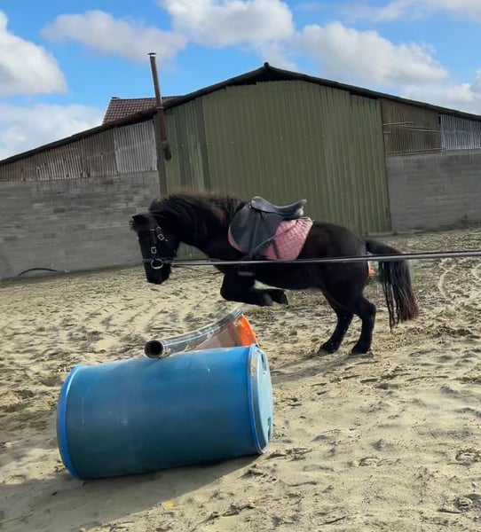 Voor onze a pony ruin Aldo zoeken wij een nieuwe thuis 4 jaar 114 cm Hij is gereden in enkel en dubbelspan en zijn ook stilletjes aan bezig met zadelmak maken. Heeft in dubbelspan al vele kilometers gedaan zowel op de baan als in bosrijk gebied schrikt niet van klein of groot verkeer niet snel onder de indruk van iets . Pony die makkelijk vast tempo houd zowel in stap als draf . Springt heel graag , gewoon met halster aan longe kan je hem laten springen. Geen stalgebreken , braaf in omgang . Heeft een equipas is correct gevaccineerd onze pony’s worden ook om de 2 jaar door tandarts “onderhouden” Steeds tijdig ontwormd Staat op weide met mijn merrie maar kan bij alle pony’s op de weide zowel merries als ruinen . Reden van verkoop Omdat we ondervinden dat hij het wedstrijd rijden bij het mennen niet leuk vind , het technisch kort draaien en keren bij een technische vaardigheid en hindernissen word hij niet vrolijk van en zoeken we dus een nieuwe thuis voor hem. Goede thuis belangrijk Staat niet in de weg dus koopjesjagers moeten niet reageren. Staat in Geraardsbergen oost Vlaanderen België