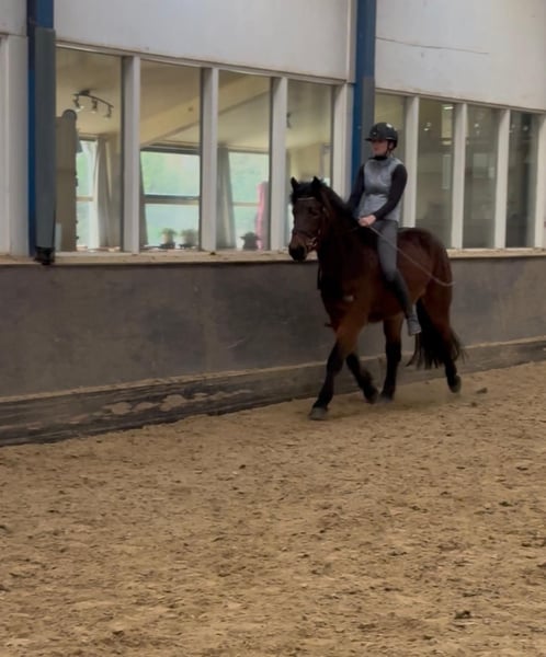 Suchst du ein super zuverlässiges, verschmustes Pony mit einem goldenen Charakter? Dann lerne Lucas kennen – ein 4-jähriger Wallach, der sich zu einem perfekten Freizeit- und Familienpony entwickelt. Lucas ist ein echter Kuschelbär: anhänglich, gelassen und von neuen Situationen kaum zu beeindrucken. Er ist nicht schreckhaft, gut erzogen und kennt die grundlegenden Dinge. Gelegentlich kann er etwas ungeduldig sein, weshalb er am besten zu jemandem passt, der ihm klare Grenzen und Strukturen gibt. Wenn er weiß, woran er ist, arbeitet er ausgesprochen brav und angenehm mit. Reitest du selbst auch gerne hin und wieder ohne Sattel, dann ist Lucas perfekt! Mit seinen ruhigen, ausbalancierten Gängen ist er auch ohne Sattel wunderbar bequem zu sitzen. Dank seiner Größe und seines Körperbaus ist Lucas sowohl für Jugendliche als auch für Erwachsene geeignet. Wichtig ist jedoch, dass sein neuer Reiter nicht unsicher oder zögerlich ist. Grundsätzlich testet Lucas seinen Reiter gerne einmal – für einen erfahrenen, konsequenten Reiter ist das überhaupt kein Problem, ein unsicherer Reiter kann ihm jedoch leichter Spielraum geben. Mit klarer Führung ist er jedoch sehr brav, ehrlich und zuverlässig. Unter dem Sattel ist Lucas dressurmäßig auf A-Niveau (entsprechend seinem Alter) ausgebildet. Natürlich muss er noch viel lernen, was in seinem Alter völlig normal ist. Insgeheim findet Lucas die Arbeit auf dem Reitplatz manchmal etwas eintönig. Wir sind überzeugt, dass sein Herz ganz klar beim Ausreiten liegt. Er vermittelt ein sehr sicheres und vertrauensvolles Reitgefühl und genießt lange Ausritte in vollen Zügen. Ideal wäre er für jemanden, der gerne ins Gelände geht oder ihm auf andere Weise ausreichend Abwechslung und Herausforderungen bietet. Gesundheitlich ist alles bestens in Ordnung: – Anfang dieses Jahres klinisch untersucht und für gut befunden – Regelmäßig beim Hufschmied (alle 8 Wochen) – Zwei Impfungen erhalten, die dritte steht noch an – Zahnarzt war erst letzte Woche da Kurz gesagt: seine komplette „TÜV-Inspektion“ ist absolut aktuell! Suchst du ein liebes, zuverlässiges Pony, mit dem du vor allem wunderschöne Ausritte genießen kannst? Dann könnte Lucas genau dein neues Herzenspony sein. 💛
