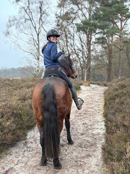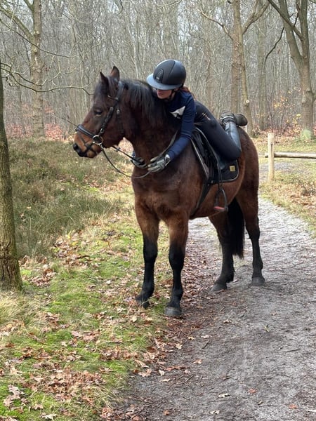 Are you looking for a super reliable, cuddly pony with a golden temperament? Meet Lucas, a 4-year-old gelding who is growing into the perfect all-round companion pony. Lucas is a real teddy bear: affectionate, level-headed and not easily fazed by new situations. He is not spooky, is well mannered and understands the basics. At times he can be a little impatient, which means he suits a rider who provides clear boundaries and consistent guidance. When he knows what is expected of him, he is a pleasure to work with. Thanks to his size and build, Lucas is suitable for both youth riders and adults. It is important, however, that his new rider is not insecure or overly hesitant. Lucas does like to test his rider from time to time; for a confident and experienced rider this is no issue at all, but a nervous rider may give him too much room. With clear leadership, he is honest, well behaved and very reliable. If you enjoy riding without a saddle from time to time, Lucas is perfect! Thanks to his steady, comfortable gaits, he is a pleasure to ride even bareback. Under saddle, Lucas is established at Basic (B) level in dressage, appropriate for his age. Of course, he still has plenty to learn, which is completely normal at this stage. To be honest, Lucas sometimes finds arena work a bit monotonous. We strongly believe his heart truly lies in hacking and outdoor riding. He gives a wonderfully safe and trustworthy feeling and thoroughly enjoys long rides out. He would be ideal for someone who loves exploring the countryside or can offer him varied work and new challenges. Health-wise, everything is in excellent order: – Clinically examined and approved earlier this year – Farrier every 8 weeks – Two vaccinations completed, third still to follow – Dentist visited just last week In short: his full health check is completely up to date. Are you looking for a lovely, reliable pony to enjoy fantastic rides out? Then Lucas might just be your new best friend. 💛