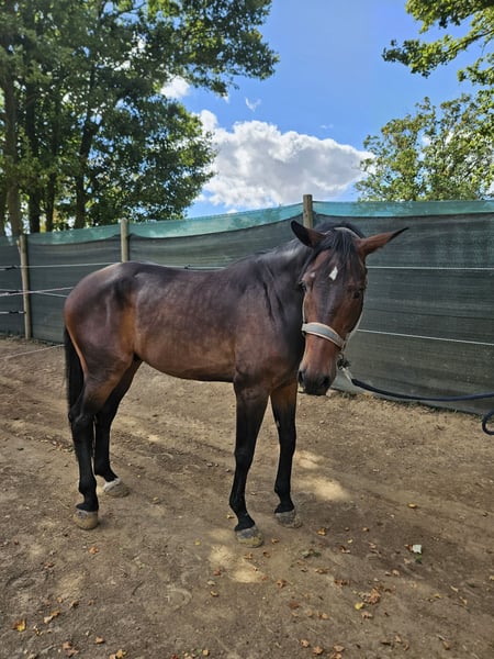 6-year-old approximately 1.64m bay gelding is looking for a loving home. He is very well-behaved in handling, easy to load, and good with his companions. The gelding is completely healthy and has no allergies. He is offered exclusively as a companion horse. Due to the many inquiries: He simply does not want to accept a rider. Everything has been tried and he has been examined by a veterinarian, X-rayed, etc. Everything is fine. Lungeing and saddling are not a problem. No rearing. However, he still does not accept a rider. Otherwise, he is a cuddly gelding who gets along very well with his companions.
