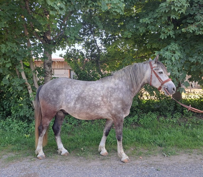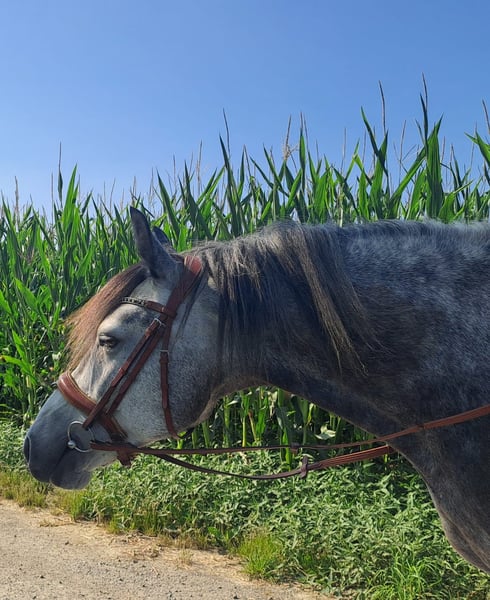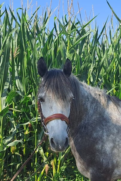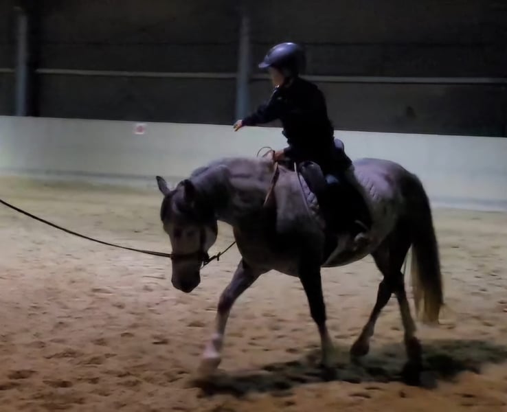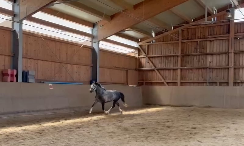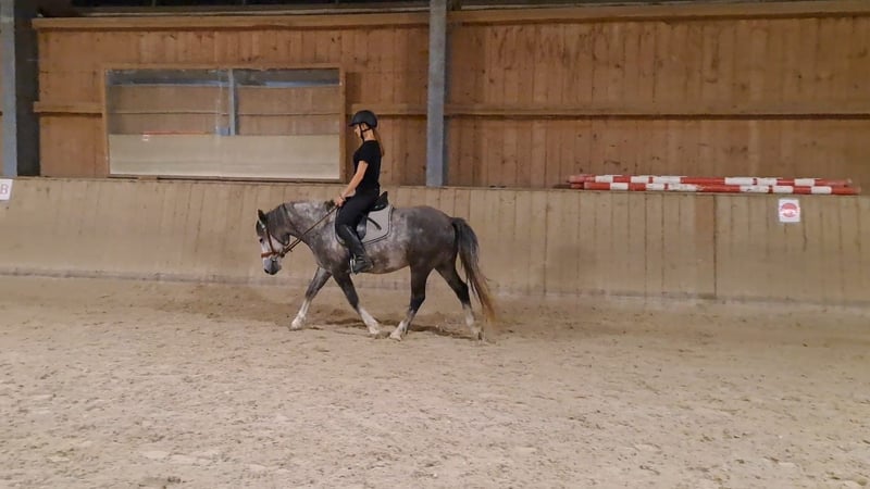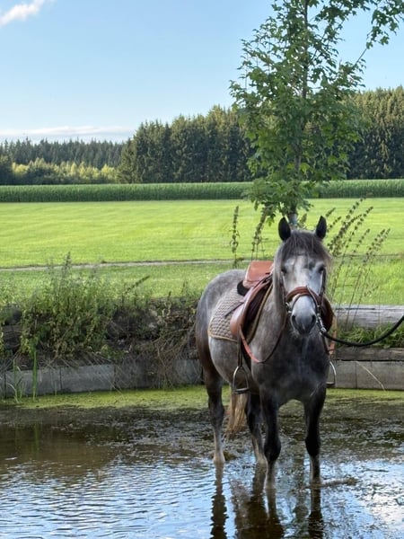 RIO * Estnisches Pony * Schimmel * 7 jährig * 1,43cm * *** Rarität zum weiter Ausbilden*** Zum Verkauf steht ein super schicker estnischer Ponywallach. Die Rasse besticht durch seine Genügsamkeit, ihrem stabilen Fundament und einem wunderbaren Interieur. Rio wurde im November 2024 für den Reitschulbetrieb gekauft, wo er anfangs einen guten Job machte und durch seine ruhige und schüchterne Art schon bald zum Lieblingspony vieler Mädchen wurde. Leider zeigte sich nach einiger Zeit, dass Rio mit den vielen wechselnden Personen nicht zurechtkommt und wurde zunehmend unsicher. Seit er nur noch von 2 Personen gearbeitet wird, zeigt er wieder mehr Vertrauen und Sicherheit. Rio kennt Platz, Halle, Longe (auch mit Reiter) und Gelände. Er geht mit Führpferd problemlos ins Wasser und kleine Sprünge sind ihm auch nicht fremd. Allerdings wurde das nicht weiter gefördert. Da Rio eher schüchtern ist und öfter mal skeptisch neuen Dingen begegnet, suchen wir für ihn einen Endplatz, wo er mit viel Ruhe und Gelassenheit weiter ausgebildet wird. Wir können uns sehr gut vorstellen, dass Rio mit seinem Menschen durch dick und dünn geht, wenn man erstmal einen Platz in seinem Herzen hat. Natürlich ist Rio regelmäßig entwurmt, geimpft und beim Schmied. Er läuft aktuell barhuf. Eine AKU aus 11/2024 ohne Befunde liegt vor. Bei uns war er nie krank oder lahm. Ein Kennenlernen/Probereiten wird mit 25€ berechnet. Natürlich werden diese beim Kauf angerechnet. Preis VB! Weitere Infos gerne auf Anfrage bitte per WhatsApp!