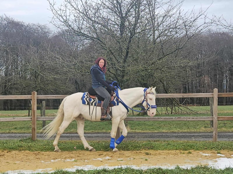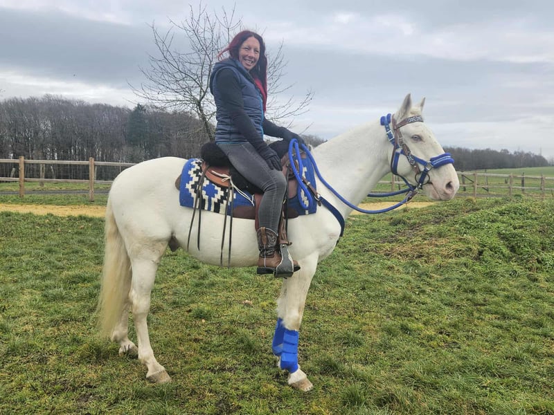 Im Westerntyp ein netter Mix Wallach – brav, gelassen & zuverlässiger Freizeitpartner Alter: 8J. Stockmaß: ca. 1,53 m Preis: 5500 AKU: Vorhanden ✨ Beschreibung: Dieser hübsche -Mix Wallach überzeugt durch sein ruhiges, freundliches Wesen und seine große Zuverlässigkeit. Im täglichen Umgang ist er super brav, unkompliziert und angenehm im Handling. Unter dem Sattel zeigt er sich sehr nett zu reiten, kooperativ und ehrlich. Er vermittelt seinem Reiter ein gutes Gefühl und macht einfach Spaß. Besonders für Ausritte und Wanderritte ist er bestens geeignet – er ist geländesicher, ausgeglichen und genießt lange Strecken ebenso wie entspannte Ritte. Ein idealer Partner für alle, die ein verlässliches Freizeitpferd suchen, mit dem man stressfrei Zeit verbringen und die Natur genießen kann. Kein Sportpferd, sondern ein ehrlicher Kumpel fürs Leben. Ideal für: Freizeitreiter, Wanderreiter oder Wiedereinsteiger, die ein braves, entspanntes und zuverlässiges Pferd suchen. Unsere Pferde werden regelmäßig: – entwurmt – vom Schmied betreut – osteopathisch kontrolliert Transport kann auf Wunsch günstig organisiert werden Anfragen bitte ausschließlich telefonisch: 0171 – 4001968 täglich erreichbar von 8–20 Uhr