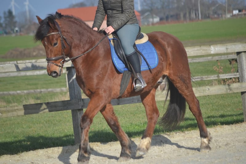 Lustiger 8-jähriger Rüde mit einer Schulterhöhe von 1,51 m. Er ist brav und ruhig im Umgang, steht geduldig beim Putzen und Aufsatteln. Er ist brav zu reiten und wird dressurmäßig ausgebildet. Aufgrund seiner etwas kräftigeren Statur ist er auch für einen kleineren Erwachsenen gut geeignet. Für weitere Informationen oder ein Video einfach WhatsApp schicken an 0031645719488.