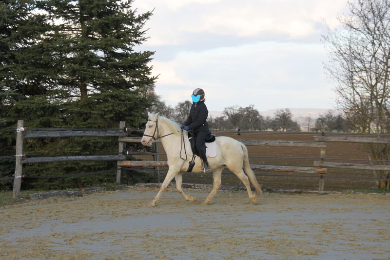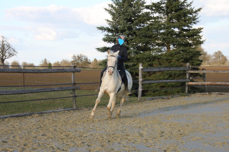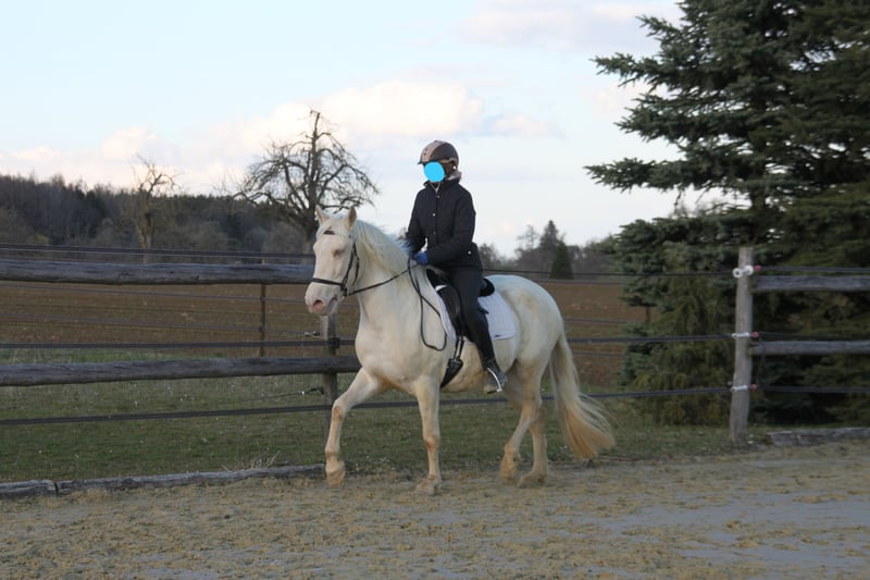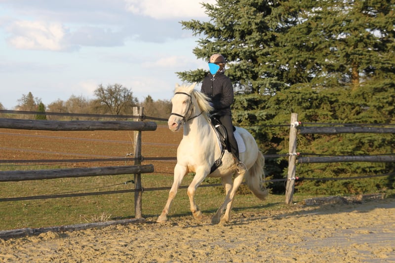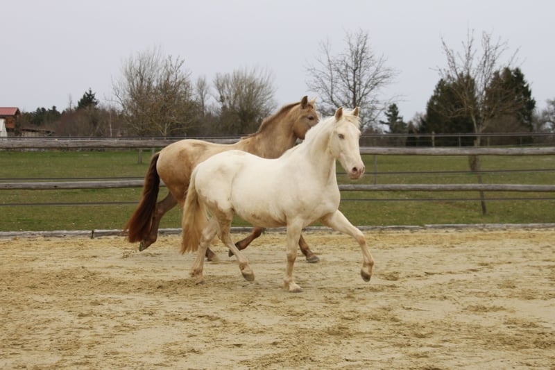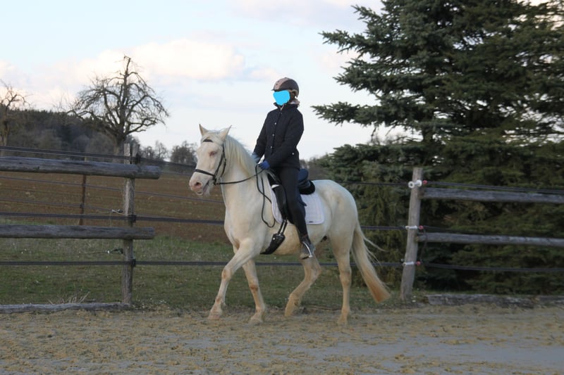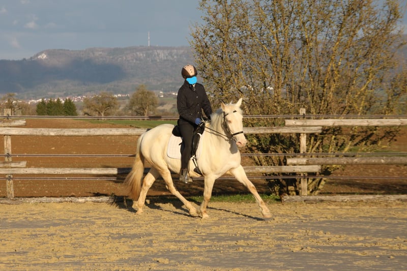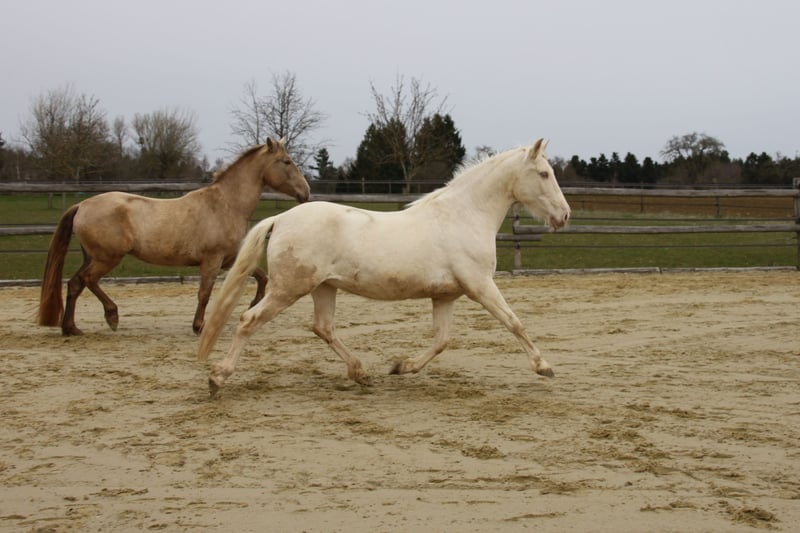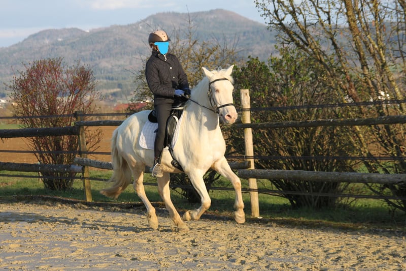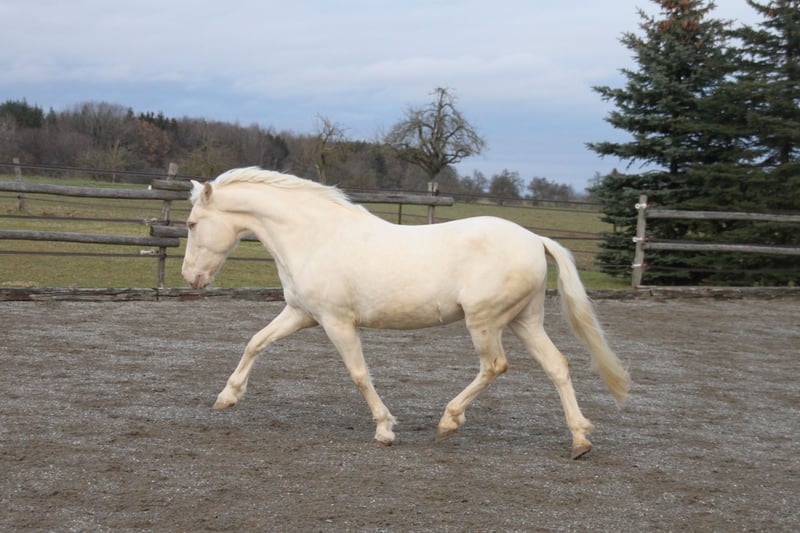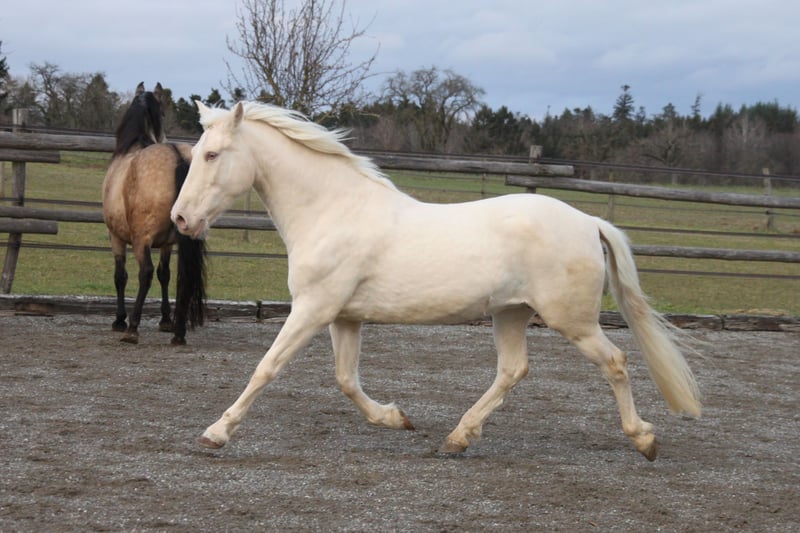 With a heavy heart, we are seeking a new, loving home for this special mare. Her light green eyes and compact build make her not only a striking sight but also a truly gentle and sweet-natured horse. Breeding & Special Features: She is an experienced broodmare (with three foals) and a genetic rarity: she carries the rare Pearl gene from unknown bloodlines, making her highly interesting for color breeding. Additionally, she is a chestnut and carries both red genes. Her color code is: ggeeaaCrPrl. Besides her registration in the Spanish studbook, she is also registered with Zfdp and measures 1.48 m. Character & Temperament: In handling, she is an absolute sweetheart—always well-behaved, refined, and very human-oriented. Under saddle and during work, she shows herself to be eager to learn and move, extremely willing to work. She wants to please but remains well-mannered and manageable at all times. Over the years, she has been gently backed during her foal breaks, calmly performs her lessons in the riding arena, is familiar with vertical lunging, and has been on a few trail rides in company. Stabling & Care: She is accustomed to herd life in an open stable with paddock as well as box stall management. Unfortunately, we have too little time to meet her work enthusiasm, and we wish for her to find a place where she can be further developed and enjoy plenty of movement with a family environment. If you are looking for a refined partner for leisure riding who always gives her best, we look forward to hearing from you!