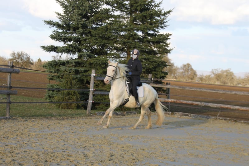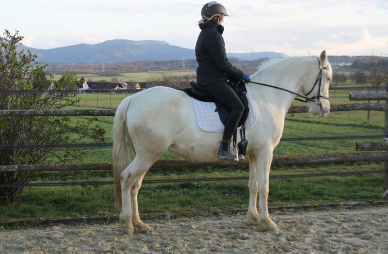 Schweren Herzens suchen wir für eine besondere Stute ein neues, liebevolles Zuhause. Mit ihren hellgrünen Augen und dem kompakten Körperbau ist sie nicht nur optisch ein Hingucker, sondern überzeugt vor allem durch ihr gutmütiges Wesen. Zucht & Besonderheit: Sie ist eine erfahrene Zuchtstute (3 Fohlen) und genetisch eine absolute Rarität: Sie trägt das seltene Pearl-Gen aus unbekannten Linien, was sie für die Farbzucht hochinteressant macht. Außerdem ist sie Fuchs und trägt beide Rappgene. Ihr Farbgencode lautet: ggeeaaCrPrl. Zusätzlich zum spanischen Stutbuch ist sie im Zfdp mit 1,48 m eingetragen. Charakter & Temperament: Im Umgang ist sie ein absoluter Schatz – immer artig, fein und sehr menschenbezogen. Unter dem Sattel / bei der Arbeit zeigt sie sich lern- und lauffreudig und extrem arbeitswillig. Sie möchte gefallen, bleibt dabei aber stets anständig und händelbar. Sie wurde über die Jahre in ihren Fohlenpausen schonend angeritten, geht brav auf dem Reitplatz ihre Lektionen, kennt vertikale Handarbeit und war auch ein paar Mal in Begleitung im Gelände. Haltung: Sie kennt Herdenhaltung im Offenstall mit Paddock als auch Boxenhaltung. Leider haben wir zu wenig Zeit für ihren Arbeitswillen und wünschen uns für sie einen Platz, an dem sie gefördert wird und viel Bewegung mit Familienanschluss hat. Wenn Sie eine feine Partnerin für die Freizeit suchen, die immer ihr Bestes gibt, freuen wir uns auf Ihre Nachricht!