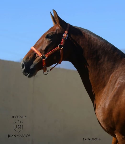 Lermosa MAZ, like Silueta MAZ, comes from the breeding of the renowned PRE breeder Juan Martos. She was born in Spain on February 10, 2014. With her height of 164 cm, she has an optimal size and is a baroque mare, featuring a strong neck and a very expressive appearance. She has an excellent pedigree; on her father's side, she has Yegada Militar lineage, and on her mother's side, she has Escalera lineage. Lermosa is exceptionally well graded with a score of 106.90 at ANCCE, which speaks highly of her quality. She has been backed but needs to be refreshed. She is a very good broodmare. Lermosa is in foal to Oreon Maz for spring 2026. She is well-behaved for the farrier and loading. Sire: Sinapsis, Dam Sire: Peluso VI