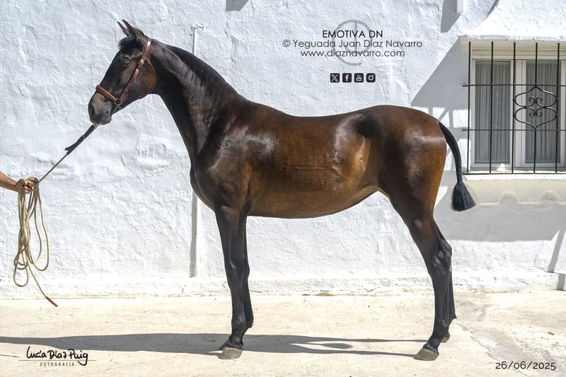 ¡Oportunidad de adquirir una hermosa y prometedora yegua! Se ofrece en venta una preciosa PRE (Pura Raza Española) de castaño, nacida en el año 2024. Con una alzada de 156 cm, esta yegua combina elegancia y presencia, ideal para quienes buscan un ejemplar de calidad y potencial. Proveniente de una reconocida ganadería, garantiza pureza de raza y excelentes características. Doma: doma de cuadra Comentarios: noble e inteligente. Hermana propia (mismo padre y madre) de Cortijero DN. Hija de Albus VDOS, del hierro de Hnos. Camacho Benítez, que compite actualmente en San Jorge. Líneas: Velero XI, Rumex, Bizarro XIV, Levitón, Obcecado, Llamativo II. Ventura Camacho, Granda, Yeguada Militar, Vizconde de la Montesina, Fernández Daza, Urquijo, D. Benito Zoido, Bohorquez. No pierda la oportunidad de incorporar a su establo una yegua de gran valor y belleza. Para más información y detalles, no dude en contactarnos.