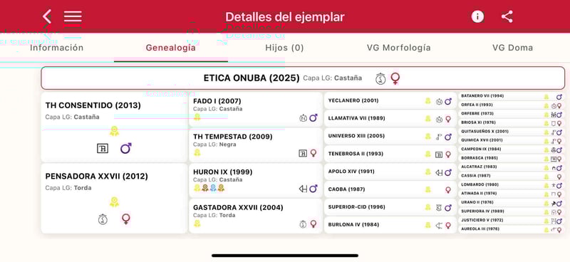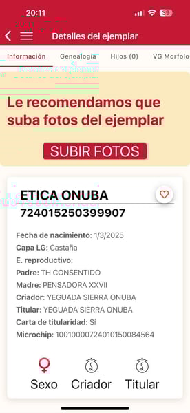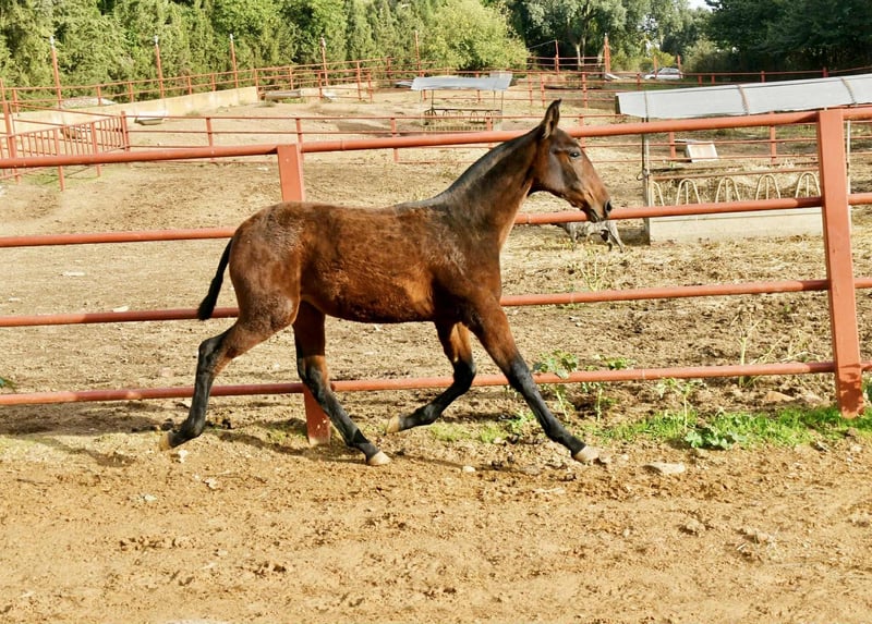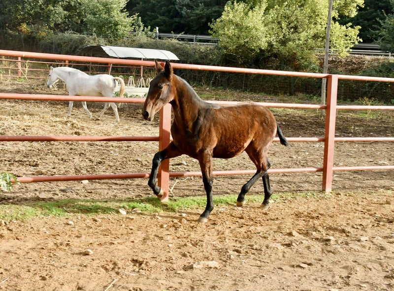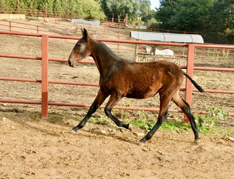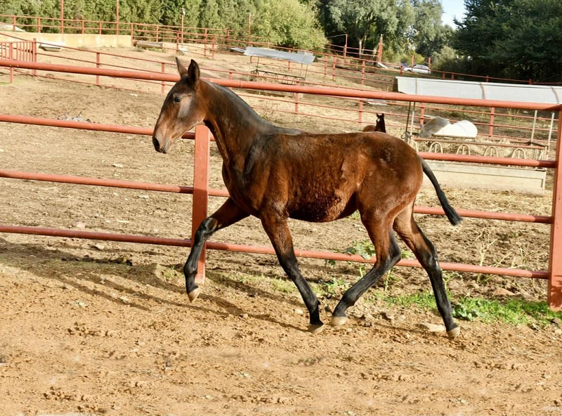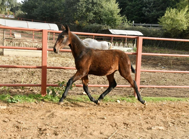 Etica Onuba. An 8-month-old PRE filly with full papers. Her sire is our stallion TH Consentido, and her dam is Pensadora, one of our top mares. She stands out for her conformation, being very large and strongly built. She has the same head as her sire. Her temperament couldn't be better. We have two full sisters of hers (same dam) in our breeding program. She comes from an excellent bloodline; her sire is Huron IX, one of the few elite stallions. We are fully convinced that she is a mare with a bright future ahead. Without a doubt, she will meet the expectations of even the most demanding buyers. Worldwide transport can be arranged. For more information, send us a private message or contact us via WhatsApp. Visit our Facebook page: https://www.facebook.com/sierraonuba