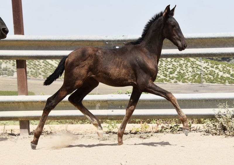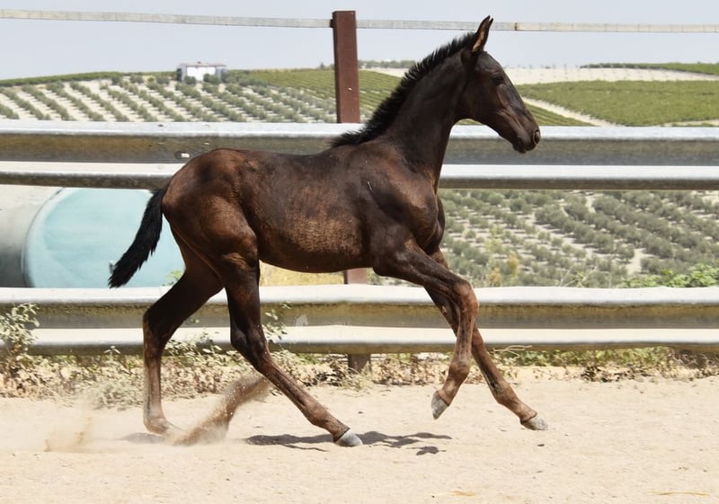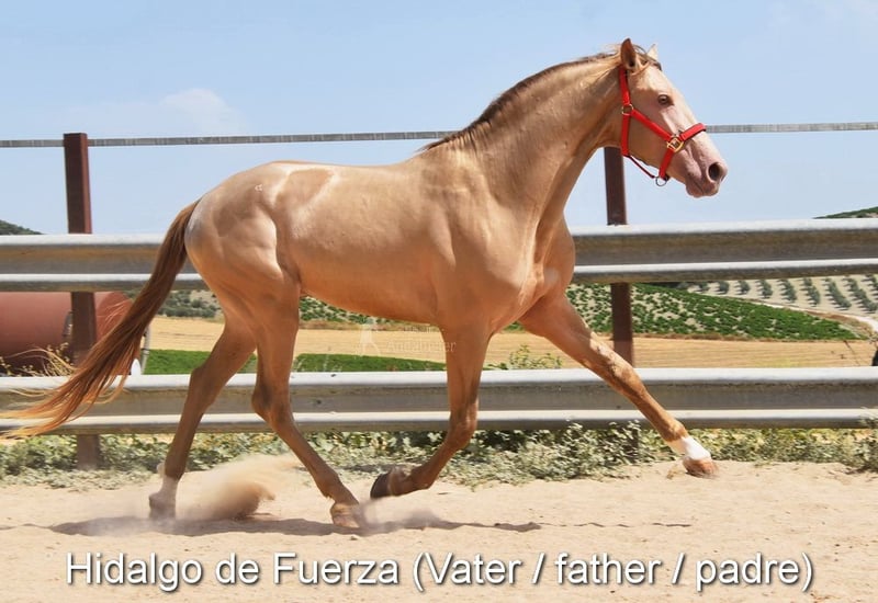 łagodny charakter, nieokiełznana, przebywa z matką oraz innymi klaczami i źrebiętami na zewnątrz, duża, dobre ruchy, specjalny kolor, czarny z genem kremowym, pochodzenie: Juan Antonio Fernandez Vargas, Yeguada Jose Luis Rodriguez Ramirez, Escalera, pradziadek Dominante XVI jest kwalifikowany www.elegante-andalusier.com