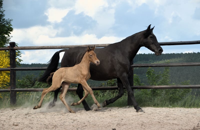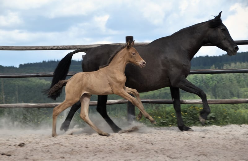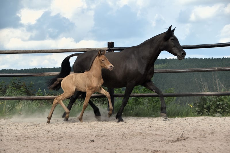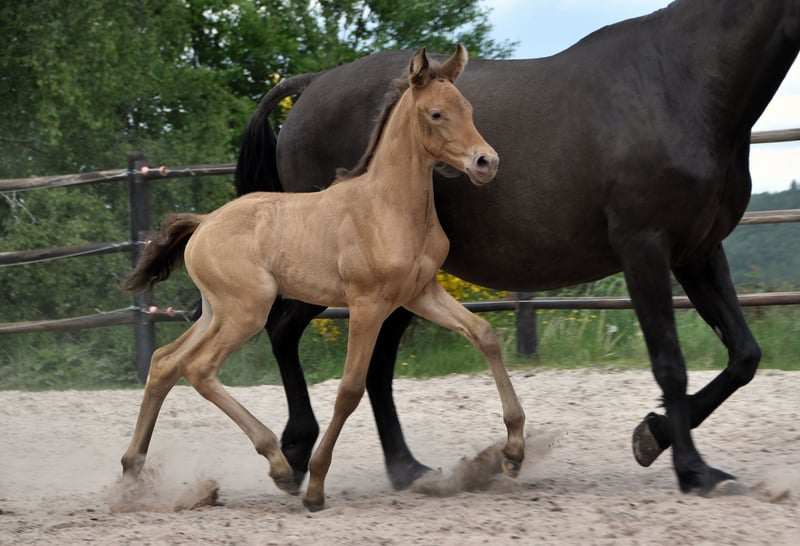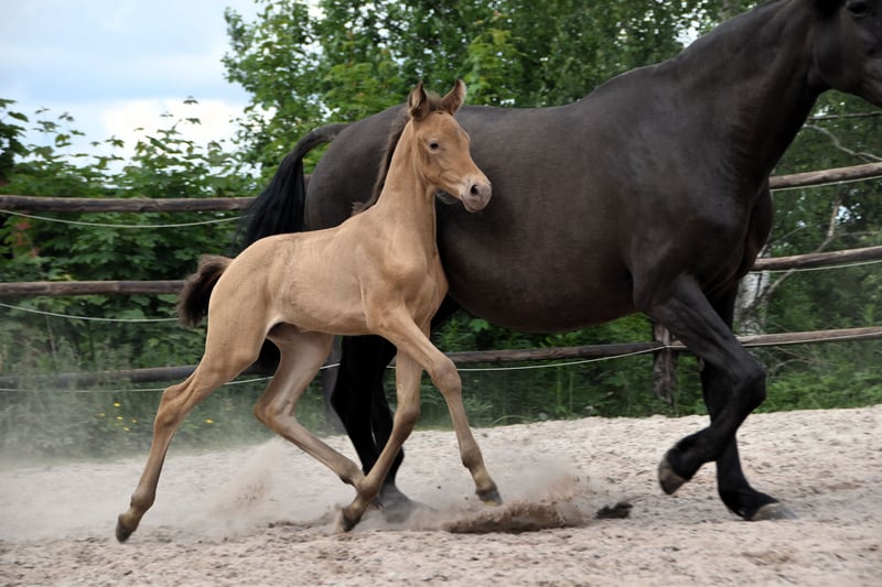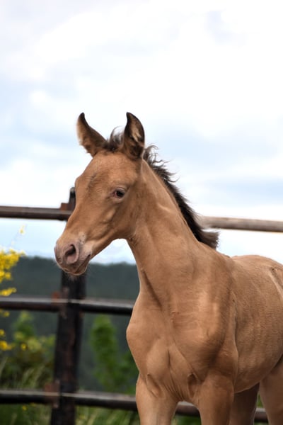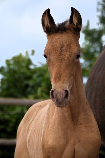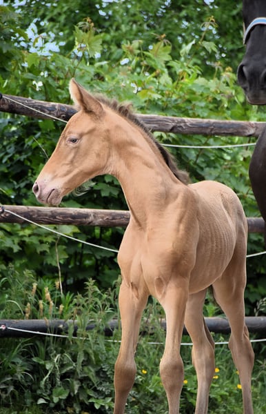 Melora ist eine äußerst einzigartige PRE-Doppelpferd (Isabelo) Fohlen, das zum Verkauf steht. Sie wurde von Emperadora XLVI und Maestrante PM geboren. Emperadora ist eine schwarze Perlenstute mit einer Größe von 1,62 m, Tochter des gekörten Hengsts Gente und auf der mütterlichen Seite Enkelin des gekörten Hengsts Femento. Ihr Vater, Maestrante PM, ist unser eigener Hengst, ein beeindruckender Doppelpferd mit einer Größe von 1,71 m. Er vererbt starkes Knochenmaterial, Größe und eine große Bewegungsfreiheit an seine Nachkommen. Neben seinen physischen Qualitäten ist Maestrante für sein vorbildliches Wesen bekannt: unkompliziert, großzügig und stets arbeitswillig. Er hat außerdem erfolgreich am Concurso Centro Europeo teilgenommen, gewann 2022 die Bronzemedaille in der Kategorie der Hengste über 7 Jahre und 2023 die Goldmedaille für Funktionalität (Unter dem Sattel, Hengste 7+ Jahre).