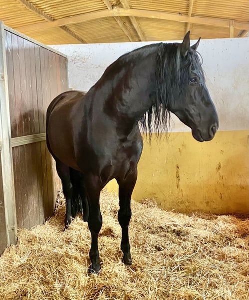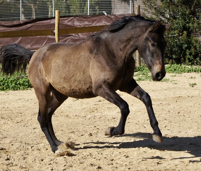 Preis ist bis April ‘26 reduziert, damit ich dem Pferd einen weiteren Umzug ersparen kann. Im Mai zieht sie auf meine Finca und der Preis steigt wieder an. Zum Verkauf steht diese wunderschöne PRE Stute, die auf den riesigen Weiden der Yeguada Yedra in der Gegend von Malaga aufgewachsen ist. Die ist absolut gesund und ohne Makel. Wir haben sie selber mit dem Anhänger von dem Gestüt geholt und das ging ohne Probleme. Sie lernt sehr schnell, sodass sie sich schon sehr gut händeln lässt. Sie kennt Aufhalftern, Hufe geben, ist lieb beim Hufe bearbeiten. Sie folgt ihrem Menschen und lässt sich gut führen. Ihr Exterieur ist makellos. Gerade im Moment ist sie hinten sehr hoch gewachsen, was aber ihre Erscheinung in der Bewegung nicht beeinträchtigt. Sie ist im Rang sehr weit unten, ordnet sich schnell unter und ist einfach nur lieb. Kein Rempeln oder schlechtes Benehmen dem Menschen gegenüber. Da sie recht groß wird, habe ich mich entschieden sie zu verkaufen. Sie hat viel Escalera Blut und ist für die Zucht auch sehr interessant. Auf den letzten Bildern seht ihr sie mit ihrer Mutter auf den riesigen Weiden. Die letzten Bilder zeigen ebenfalls den Vater.