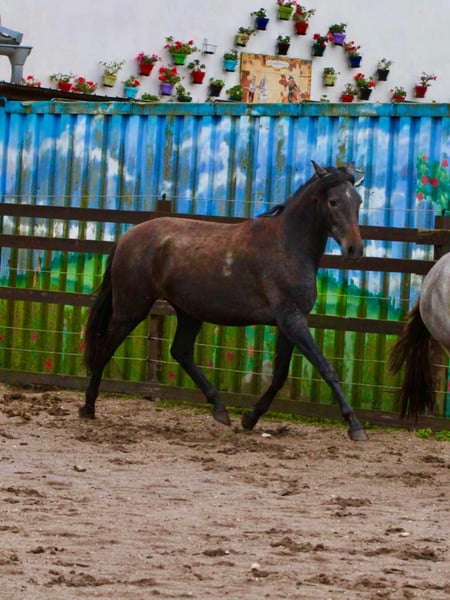 Titel: Charmante PRE merrie met indrukwekkend uiterlijk te koop Advertentietekst: Te koop is een prachtige PRE merrie geboren in 2023, met een prachtige grijs zwarte vacht en een geschatte eindhoogte van 160 cm is ze een echte blikvanger. Deze indrukwekkende merrie maakt niet alleen indruk met haar schoonheid, maar ook met haar zachte en evenwichtige karakter. Ze is bij uitstek geschikt als toekomstig recreatiepaard. Haar afstamming is zuiver Spaans (PRE) en ze is in alle opzichten een echte parel. Ze heeft een vriendelijk en rustig karakter. Deze merrie is een echte schat en klaar om haar nieuwe thuis te vinden. Ze is klaar om haar reis te beginnen naar een liefdevol thuis waar ze de aandacht en zorg zal krijgen die ze verdient. Als je op zoek bent naar een betrouwbare en liefdevolle metgezel, dan is deze PRE-merrie echt iets voor jou. Aarzel niet om contact met ons op te nemen voor meer informatie of een bezichtiging. Houd er rekening mee dat we alleen serieuze aanvragen in overweging nemen. We kijken ernaar uit van je te horen en je voor te stellen aan onze prachtige merrie.