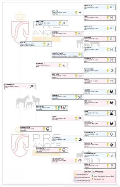 Mogelijkheid om een prachtige en veelbelovende merrie aan te schaffen! Te koop aangeboden: een PRE-merrie met uitstekende genetica, geboren in 2024. Ze heeft een bontkleur en een schofthoogte van 155 cm, ideaal voor wie op zoek is naar een paard van kwaliteit en schoonheid. Afkomstig uit een gerenommeerde bloedlijn, combineert deze merrie elegantie, kracht en karakter. Perfect voor fokkerij, dressuur of concours, haar temperament en conformatie maken haar een zeer interessante keuze voor elke ruiter of fokker. Genetische achtergrond (genotype): ggAAEeCCrNN Dressuur: stal dressuur. Opmerkingen: nobel en beweeglijk. Ze kan nakomelingen geven in de kleuren kastanjebruin, bont, palomino, alazan, perlino, cremello, bontperla, palomino perla en tinker. Lijnen: Divo, Norte A, Velero XI, Deco, Llamativo II, Colombiano III. Yeguada Militar, Vizconde de la Montesina, D. Benito Zoido, Paco Martí. Neem gerust contact met ons op voor meer informatie en het plannen van een bezichtiging. Een kans die je niet wilt missen!