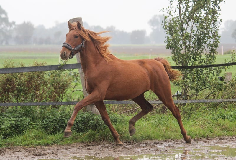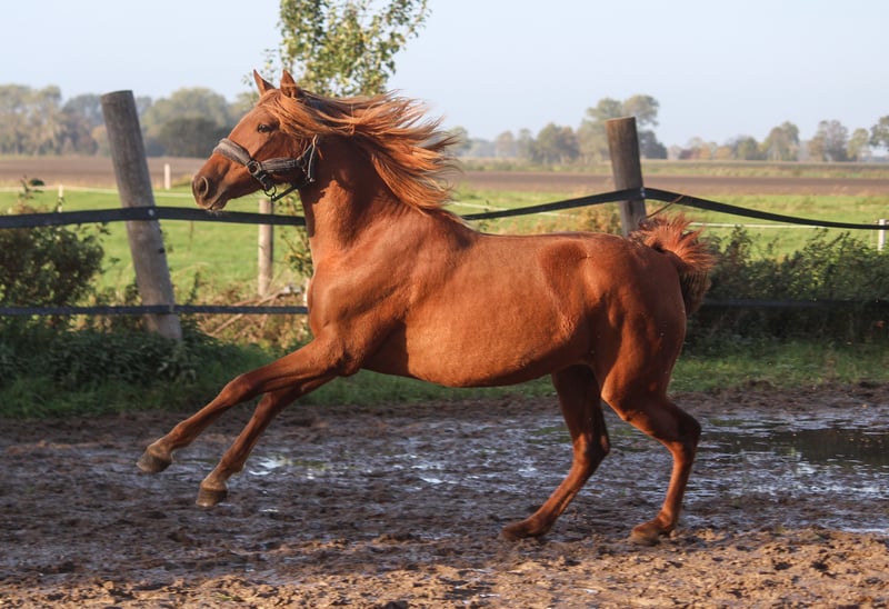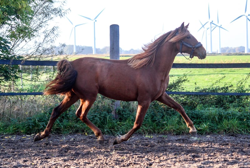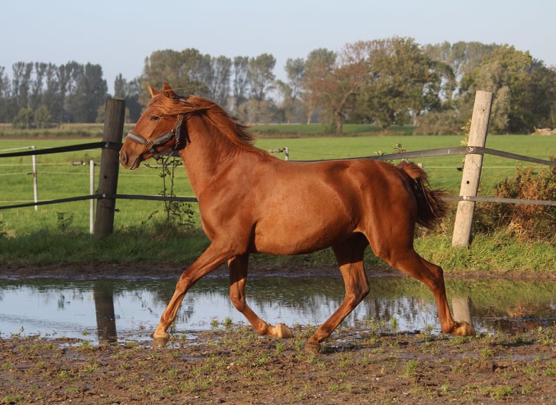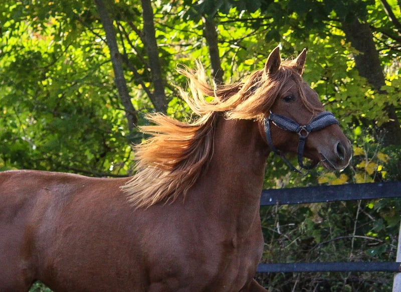 Même les parents de Guantanamera sont d'une beauté impressionnante. La mère, une jument alezane nommée Gamberra, a été sélectionnée par l'association espagnole avec d'excellentes notes, notamment pour son type de race particulièrement remarquable. Le père de Guantanamera, Acapulco Ducal, est aussi magnifique qu'une peinture et est actuellement entraîné en Suisse dans le domaine du dressage. La jeune jument montre déjà, à l'âge d'un an et demi, un poil exceptionnel. La crinière lui descend presque jusqu'aux naseaux. Mais ce n'est pas seulement la beauté qui lui a été donnée, elle possède également une grande qualité de mouvement. Elle dispose de trois allures de base solides, avec un dos porteur et une excellente activation de l'arrière-main. Nos chevaux sont tous très confiants et proches de l'homme. Le débourrage ne pose aucun problème chez nous, car ils n'ont jamais vécu de mauvaises expériences. Si vous êtes intéressé par Guantanamera, n'hésitez pas à nous contacter. Nous pouvons vous donner des détails approfondis sur chaque cheval né chez nous.