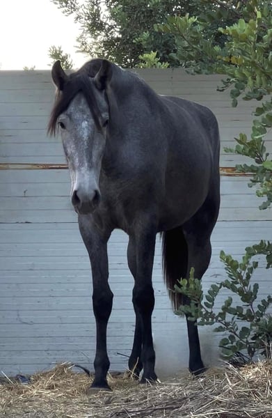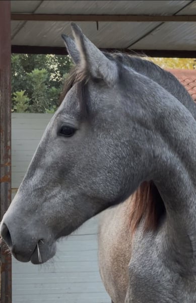 On behalf of the breeder: Farruca de Cantalobos... ...makes the heart of every connoisseur and lover of the pure Spanish breed beat faster. Her spectacular and expressive movements speak for themselves. With appropriate training, she will develop very well in dressage work. She has a character of the highest class and is simply a treasure in daily handling. Farruca learns very quickly and eagerly, always staying attentive. Raised under the best conditions in a herd environment and with daily human contact, she is exceptionally well-developed, as can be seen from her excellent topline and corresponding foundation. She currently stands at a height of 1.65m. Anyone looking for an exceptionally high-quality Spanish young horse with excellent dressage potential will find it here! Naturally, this rough diamond comes with full ANCCE papers. Her pedigree traces back to outstanding Lovera lines. Her father, "Manijero CA II," stands at 1.70m, and her mother, "Perla XLVIII," measures 1.67m. Both parents are owned by the breeder and can be viewed on-site. The father has achieved successful placements in dressage competitions, while the mother is the best breeding mare of "Yeguada de Cantalobos." Of course, she has been regularly dewormed, vaccinated, and has seen the farrier. We are happy to assist you with the organization of transport. Please feel free to contact us! If you have a horse that you would like to sell, just let us know. We buy, take in trade, or market your horse for you until the final sale. More information at www.wow-pferd.de