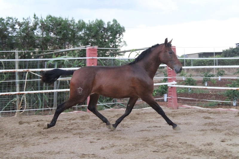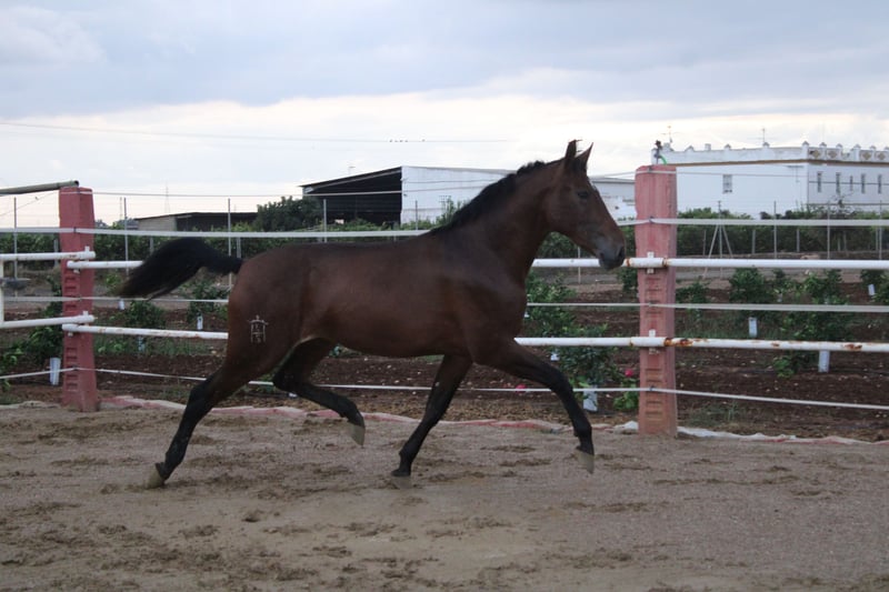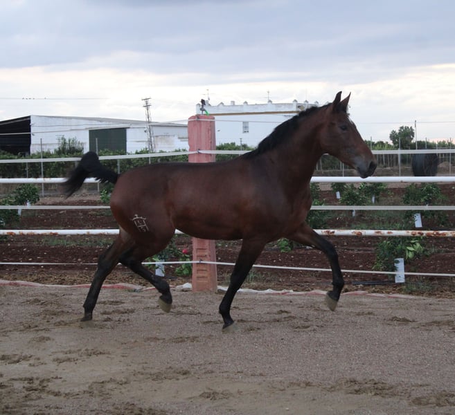 Potra pura raza española ,con mucha nobleza de gran alzada y hueso, con buenos aires. Con doma de cuerda.
