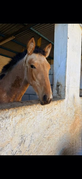 Potra baya PRE con buena talla, muy noble y excelentes movimientos.
