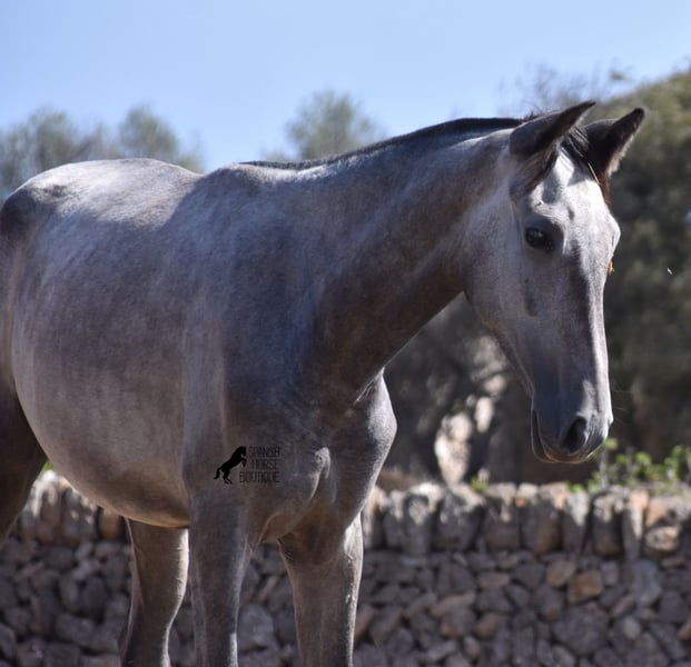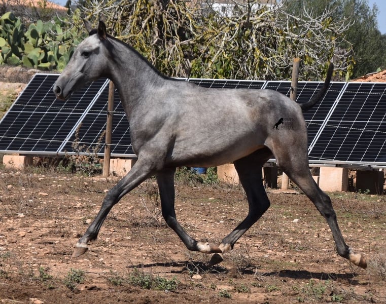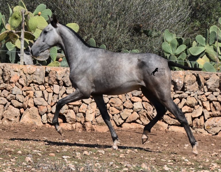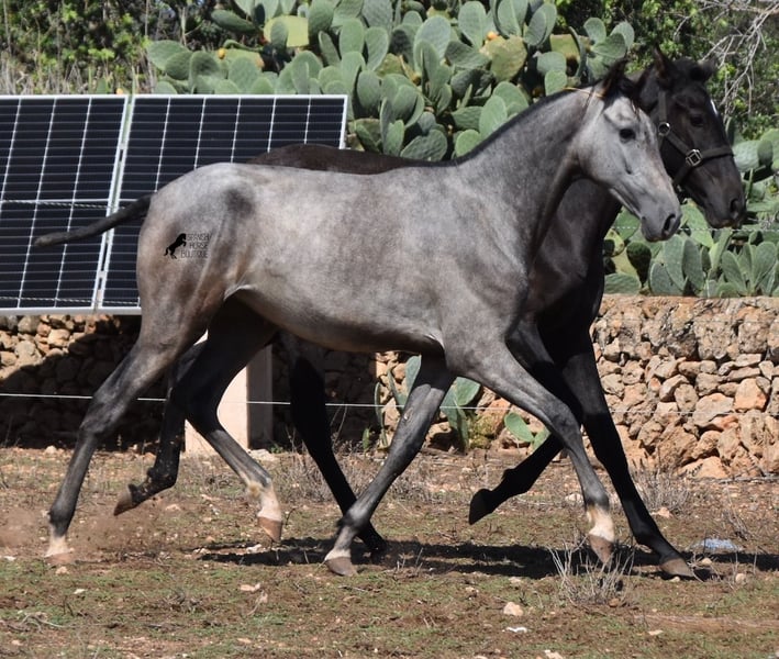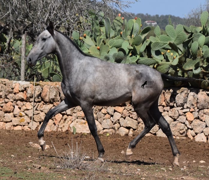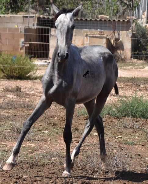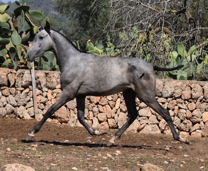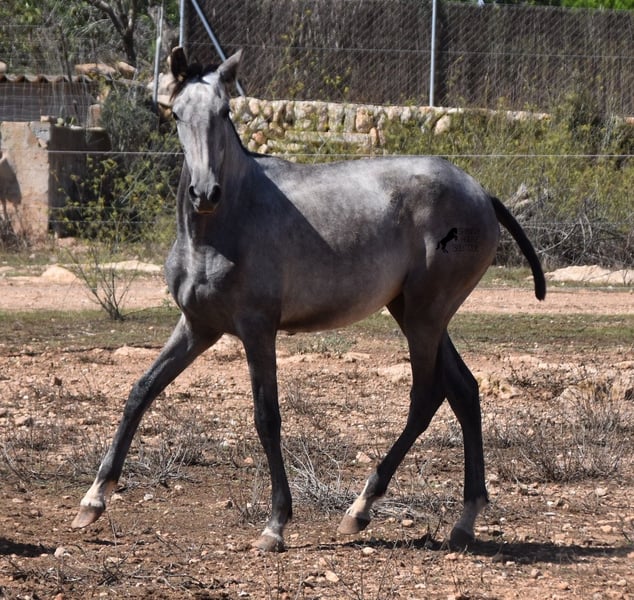 This PRE mare (Andalusian with ANCCE breed certificate), born in 05/2023, is already a magical, elegant young horse. Her pedigree is truly sensational, because on her sire's side she can be traced back to the exceptional stallion FER TEMPRANILLO, who has strongly influenced the PRE of today. On her dam's side we find the unique JUDIO VII, as well as Mejorante and Recomendado stallions! She already has great movement with lots of impulsion, despite the stony ground. But thanks to the ground and her robust attitude, she has very clear legs and good hoof quality. She lives outside 24 hours a day with a friend and is therefore well hardened in all weather conditions (it gets cold and frosty even in winter!). Her expected final height is around 160cm and she will later be open to many disciplines thanks to her good movement and agility. There is the possibility to leave her longer in Mallorca for breeding, but she would be ready to leave and come to you :) Videos and pedigree on request. Her location is Mallorca. I would be happy to organize a foal AKU on site, transport or even her trip, should you come to see her in person. Details on my site or in conversation. Saludos from Spain