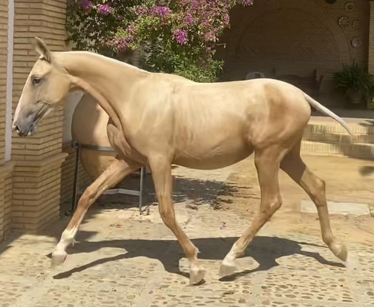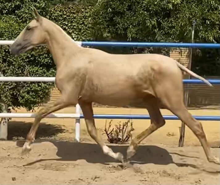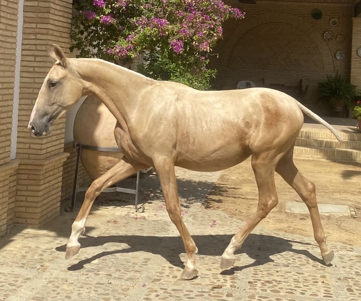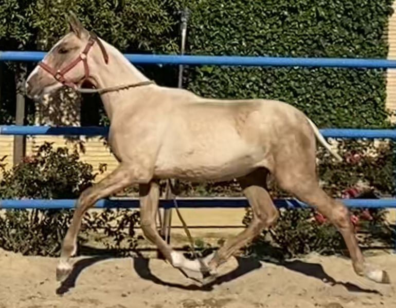**For Sale: PRE Palomino Mare** Excellent granddaughter of SIMPÁTICO DE MILLAN III, the youngest improving stallion in history and one of the most influential stallions of the last decade in Spain, being the horse with the most offspring in the finals of the PSCJ and the COPA ANCCE SICAB 2023 and 2024 finals. A unique opportunity for horse lovers! A beautiful Pure Spanish Breed (PRE) mare, born in 2023, is offered for sale. Highlighted features: - Color: Palomino - Height: 165 cm - Discipline: Classical Dressage This mare stands out for her elegance and temperament, ideal for those seeking a horse with potential in classical dressage. With a gentle character and great potential, she is perfect for both experienced riders and those looking to start their journey in the world of horseback riding. Don't miss the opportunity to meet her. Contact us for more information and to arrange a visit!