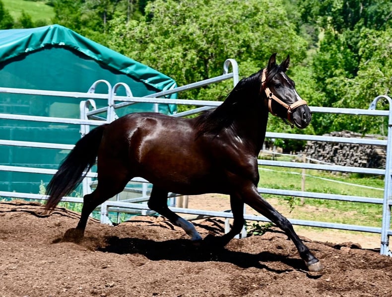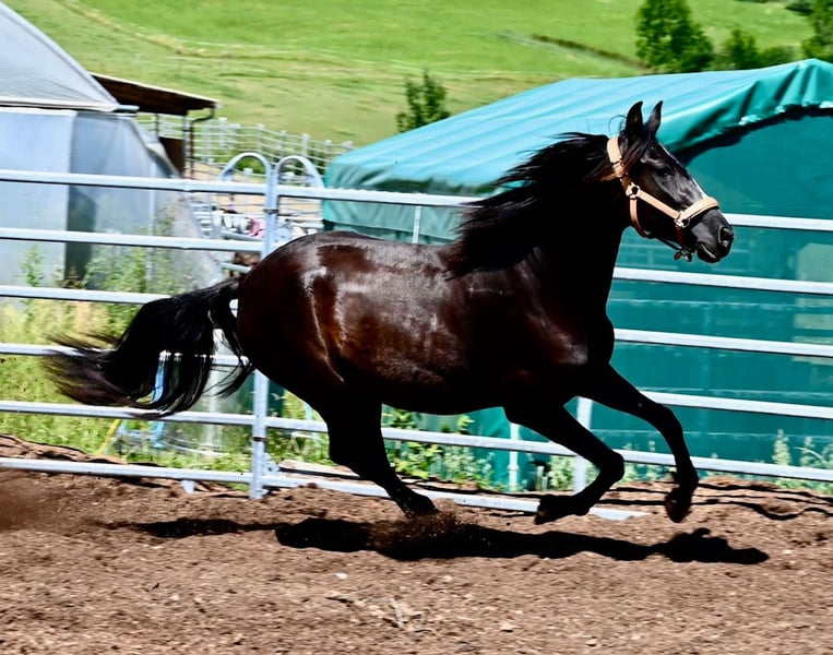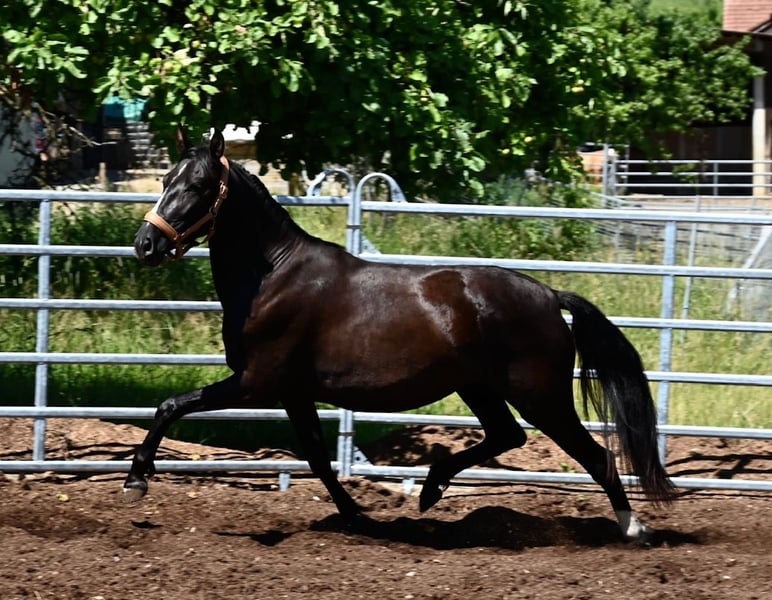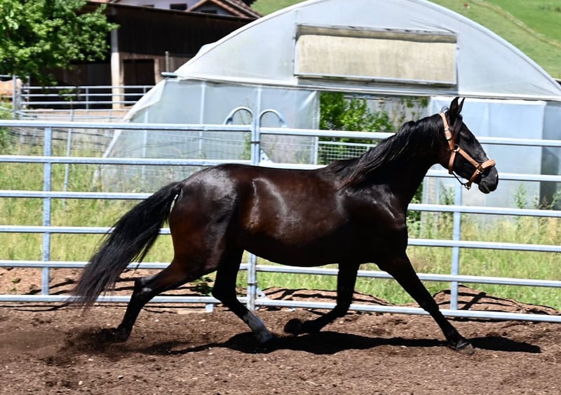 On behalf of the client: Picara Arenosas …is an expressive Pure Spanish Horse mare that immediately captivates with her elegant appearance and flowing gaits, leaving a lasting impression. Her friendly, affectionate nature and consistently cheerful demeanor make her a true favorite. In daily handling, she is attentive, perfectly well-behaved, and excellently trained – making everything with her a real pleasure! Picara was fortunate to grow up appropriately within a herd. This year, she was gently backed and is currently being ridden at a basic level suitable for her age. She has already gained experience as a lead rein horse during rides. Under saddle, she demonstrates a willingness to learn, a good work ethic, and a positive attitude. She is a model student: she learns quickly, always wants to please, and is exceptionally eager to do everything correctly! Picara has already been approved at a basic inspection with an excellent evaluation. Of course, this black beauty’s lineage traces back to Escalera and Yeguada Militar, with full ANCCE paperwork. Her pedigree is a testament to her talent, nerve, and, not least, her work ethic. Equipped with plenty of push from behind, quick agility, and a spacious trot, she is quite competitive. We can easily imagine her excelling in dressage or working equitation competitions in the future. The best foundation has already been laid for this. If you have a horse you wish to sell, please do not hesitate to contact us. We buy, take in trade, or market your horse for you until the final sale. More information at www.wow-pferd.de