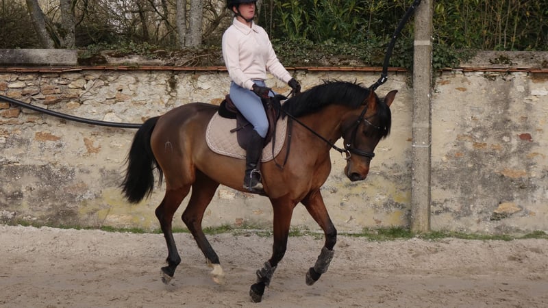 A vendre Jument de 4 ans Pure Race Espagnole plein papier, toise 1m55 environ, baie Dressée, prête pour les cycles libres 4 ans, commence cession à la jambe, contre galop. 3 belles allures, un pas ample, un trot avec du geste, un galop equilibré Tres gentille, montée de temps en temps par une Cavaliere galop 3, part en balade seule ou à plusieurs Visite veto complète du mois d'octobre avec radios nickel