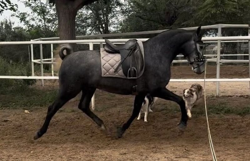 Diese junge PRE-Stute mit allerbester Genetik grenzt allein optisch schon an Perfektion: ein wunderbar ausgewogenes Gebäude mit toller Halsung, perfekter Oberlinie und einem soliden Fundament lassen bereits auf den ersten Blick erahnen, dass sie die Tochter hochprämierter Elterntiere ist. Nicht umsonst konnte die junge VARONESA auch auf einigen Zuchtschauen bereits glänzen. Von ihrer Besitzerin wird sie zudem derzeit schonend angeritten und zeigt auch dort ein exzellentes Interieur: sie ist zuverlässig, arbeitswillig und stets absolut kopfklar. VARONESA kommt aus bester Haltung von einem kleinen Gestüt. Sie besitzt natürlich volle Papiere des spanischen Züchtervereins ANCCE. Standort Spanien.