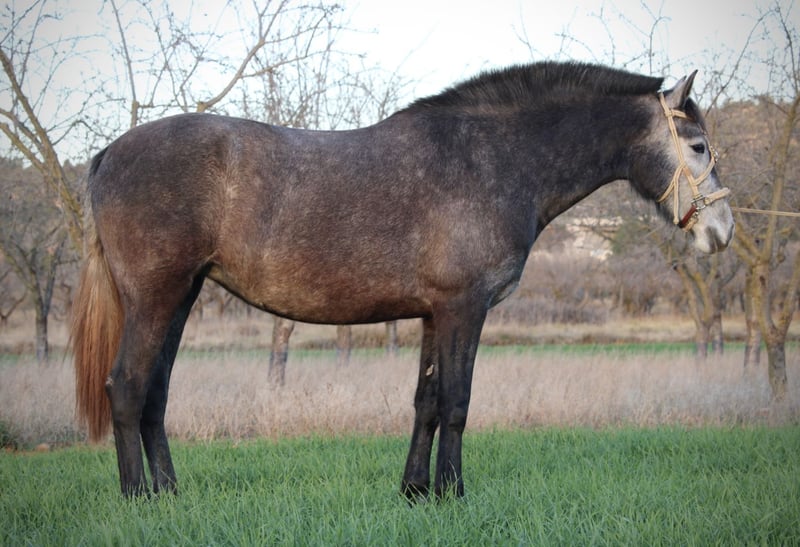 This young PRE mare with the very best genetics borders on perfection in appearance alone: a wonderfully balanced conformation with a great neck, perfect topline and a solid foundation give you an idea at first glance that she is the daughter of highly awarded parents. It is no coincidence that the young VARONESA has already shone at several breeding shows. She is also currently being gently broken in by her owner and is showing excellent conformation: she is reliable, willing to work and always has a clear head. VARONESA comes from a small stud with the best breeding. She naturally has full papers from the Spanish breeders' association ANCCE. Location Spain.