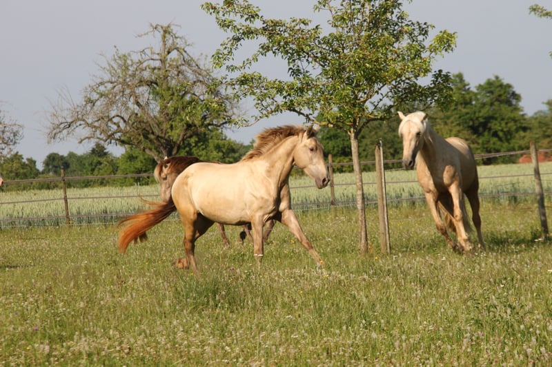 **Verkaufsanzeige: Nachwuchsstute geb. 2022 – Pearl, 160 cm** Zum Verkauf steht eine vielversprechende Nachwuchsstute, geboren im Mai 2022. Kelea besticht durch ihre elegante, aber trotzdem barocke Erscheinung und ihr vielversprechendes Bewegungspotential. Mit einem Stockmaß von 160 cm bietet sie die perfekte Größe für den ambitionierten Freizeitreiter oder den zukünftigen Turnierreiter. Sie verfügt über ein freundliches, aufgeschlossenes Wesen, das sie zu einem angenehmen Partner macht. Ihr ausgeglichener Charakter und Lernwille lassen eine vielversprechende sportliche Entwicklung vermuten. Auch für die Zucht kann sie sehr interessant sein, da das Pearl-Gen ihrer Mutterlinie bisher unbekannt ist. Sie hat den Farbgencode: ggEeaaPrlPrl Kelea ist bei uns geboren und sorglos in einer gemischten Herde im Offenstall mit Weidegang aufgewachsen. Insgesamt ist sie eher ein Spätentwickler, weshalb wir sie bisher auch nicht angeritten haben. Nun ist sie aber bereit, ihre weitere Ausbildung aufzunehmen und sich zu einem zuverlässigen Allround-Pferde-Partner zu entwickeln. Selbstverständlich wurde sie regelmäßig entwurmt, die Hufe gemacht und Tetanus geimpft. Letztes Jahr haben wir einen Züchtercheck machen lassen, bei dem alle 14 Röntgenbilder ohne jeglichen Befund waren. Bei Interesse oder weiteren Fragen stehe ich gerne zur Verfügung.