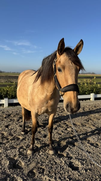 ✨ Prachtige merrie uit 2022 met een gouden karakter én uitstraling ✨ Deze lieve en werkwillige PRÉ merrie is een echte eyecatcher, niet alleen door haar bijzondere gouden look, maar vooral door haar fijne karakter. Ze meet momenteel circa 1.61 m, en gezien haar jonge leeftijd zal ze naar verwachting nog wat doorgroeien. Haar vader is Mar Wonderful en zij beschikt over een mooi papier. De merrie is in het bezit van een Carta. Ze is zadelmak, pakt het werk zeer goed op en is eerlijk en braaf. De ruiter op de foto is 14 jaar, wat haar betrouwbare en fijne karakter extra benadrukt. Momenteel zijn we haar rustig verder aan het opleiden. Ze is verkeersmak, nuchter en koel in het hoofd, en is al meerdere keren op buitenrit geweest, wat zij zichtbaar leuk vindt. Door haar rustige, sociale en meewerkende karakter is zij bovendien zeer geschikt als coaching- of therapiepaard. De merrie is braaf bij de hoefsmid, is recent nog bij de tandarts geweest, krijgt tijdig haar wormenkuren en haar entingen zijn volledig op orde. Zij is vanaf veulen al in Nederland opgegroeid. De merrie is sociaal en vriendelijk naar andere paarden en kan goed met zowel merries als ruinen. Afgelopen zomer heeft zij dag en nacht in groepsverband buiten gestaan. Daarnaast beschikt zij over een genetisch kleurenanalyse rapport en is zij drachtig van de prachtige hengst Sonador PT. Zij is begin mei uitgerekend en draagt een veulen met het pearl-gen, wat dit extra bijzonder maakt. ✔ Allround inzetbaar ✔ Braaf, nuchter en werkwillig ✔ Gezond en geen gebreken Een eerlijke merrie met veel potentie voor sport, recreatie, fokkerij of coaching ✔ januari 2026 klinisch goedgekeurd Graag alleen reageren als je serieuze interesse hebt! Prijs is merrie met veulen