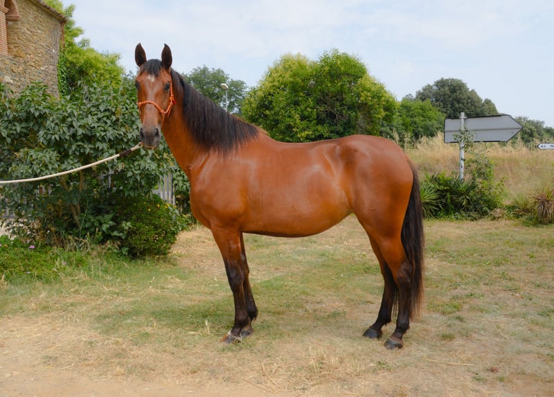 Jument de 4 ans avec un bon caractère, montée en carrière et sortant en extérieur, 166 cm de hauteur.