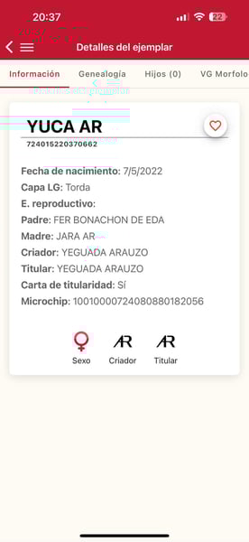 Nous avons décidé de vendre l'une de nos meilleures juments. Son nom est YUCA AR. Pura Raza Española. 3 ans. Taille 167 cm. Elle est issue de Fer Bonachon (photos jointes). C'est l'un des chevaux les plus récompensés ces dernières années. Cinq fois vainqueur au Sicab. Elle a hérité de l'élégance et de la conformation de son père. Elle a une très bonne conformation, des mouvements de TOP niveau (regardez la vidéo) et un caractère adorable. Très facile et douce dans toutes les circonstances. Nous sommes totalement convaincus qu'elle peut répondre aux attentes des clients les plus exigeants. QUALITÉ TOP TOP. Malheureusement, il n'est pas facile de trouver des juments comme elle. Un véritable trésor à ne pas manquer ! Le transport peut être facilement organisé.