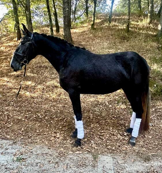 🇬🇧Trufa TS🇬🇧 Trufa is a three-year-old PRE mare standing at 16.1 hh. Recently retrieved from the field, she was raised in complete freedom. Her origins trace back to the Centurión stud farm. Good movement for dressage and an exceptional temperament. Excellent X-ray results. For sale. More information and videos available privately.