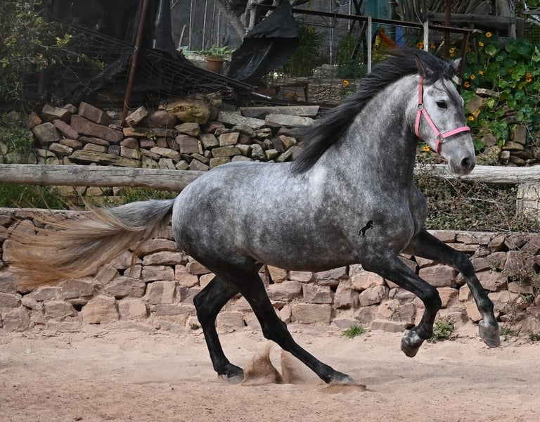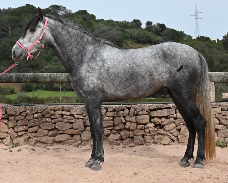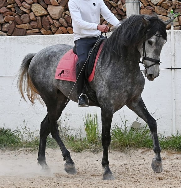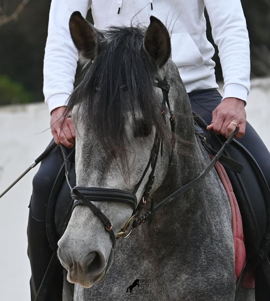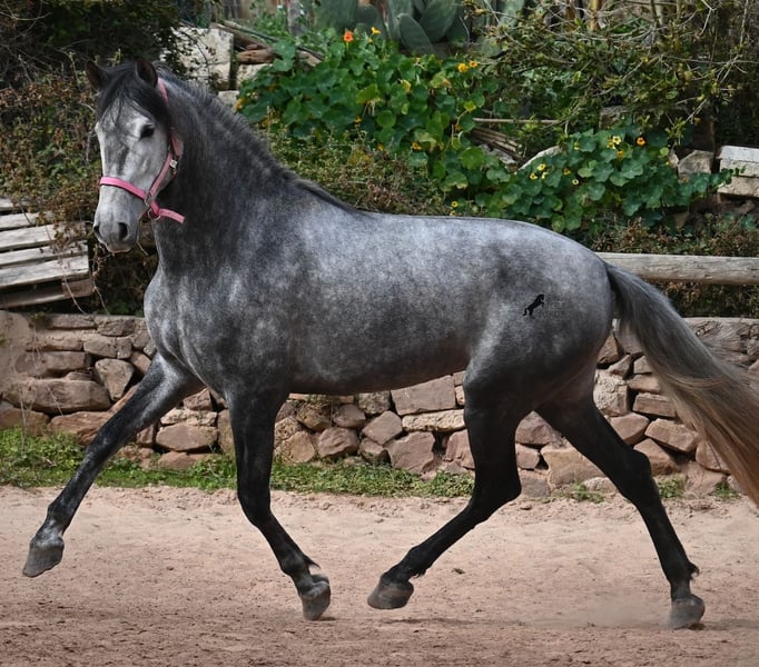 Dieses mit schon beachtlichen 170cm große Pferd, ist ein reinrassiger PRE von 2022 (Andalusier mit Rassenachweis der ANCCE) und eingetragen als Stute. Doch dieses Wunder der Natur, ist wie sich später herausstellte, auch mit männlichen Genitalstrukturen ausgestattet. Umgangsprachlich würde man Zwitter sagen, was dich nun bestimmt stutzig macht beim Lesen aber defacto ist dieses Sonderwesen so von der Natur kreiert worden :) Da es der ursprüngliche Plan war zu züchten, was nun nicht möglich ist, da keine Rosse eintritt und der doppeltgeschlechtliche Zustand den Hormonhaushalt nicht mit anderen Pferden vergleichen lässt, wird nun ein Lebensplatz für dieses Pferd gesucht und das zu einem sehr niedrigen Preis. Das Pferd wird nun angeritten und kennt aktuell das Reitergewicht in Schritt und Trab ohne Longe (für Galopp wird noch an der Balance gearbeitet). Was zu beachten ist, eine Herdenhaltung ist in dem Fall nur bedingt möglich- männliche Pferde reagieren teilweise hormonell auf das Pferd und der Hengstanteil zeigt sich gerne stolz und männlich. Auf Stuten reagiert der Hengstanteil auch, somit wäre nur eine Wallachhaltung bedingt möglich, was aber auch probiert werden müsste. Aktuell ist die Haltung in der Box und ohne Probleme, sowohl mit Hengsten als Nachbarn, als auch mit Stuten am Stall. Das wäre vermutlich auch die beste Option der Haltung, in Paddockbox oder Box, um sicherzugehen, dass beide Anteile im Pferd, in Harmonie leben können. Eine "chemische Kastration" ist vermutlich auch nicht erfolgreich, da der Hormonhaushalt anders in dem Pferd funktioniert. Für eine operative Kastration fehlen die Hoden. Ein ganz spezielles, espritvolles Pferd, was sich gut als Reitpferd entwickelt und auch sehr schick ist- für kleines Geld! Der Standort ist Menorca. Gerne organisiere ich vor Ort eine AKU,Transport oder auch ihre Reise, sollten Sie persönlich zum Anschauen kommen. Details dazu gerne auf meiner Seite oder im Gespräch. Saludos aus Spanien