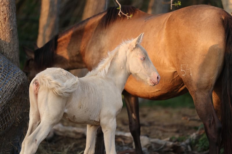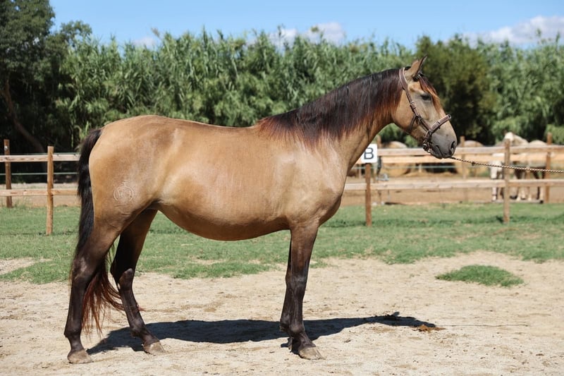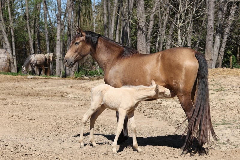 We are selling our beautiful 4-year-old PRE mare Esmeralda ✨ She has passed her inspection and has a special color genetics. She lives in a herd on the pasture and is a relaxed and grounded horse. Before her break for foaling, she was regularly worked on the ground, is familiar with saddle and bridle, and has mastered the first mounting exercises with ease. She will be trained and started again from now on 🐴, and there will be regular new photos of her. Esmeralda is approximately 1.59m tall and has a baroque type. I have known her father and paternal grandfather for years, and I am proud to have such a wonderful mare from this line. Her mother has also passed on the best traits to her and has an equally balanced character. This year, she brought us a very special foal, the little princess Amanda 💕 Whether the little one is Cremello or Perlino will soon be revealed by the genetic analysis. We are guessing Cremello. We are so excited about the result that she has been inseminated again by the sensational stallion TYCO YR, bred by Rolf Raemy 👏🏻👏🏻 Currently, she is in her second month of pregnancy. Tyco is a Cremello stallion measuring 1.68m, with incredible movements and correct conformation, along with a great character. I am fortunate to occasionally photograph Tyco and see his offspring grow up and capture them photographically. Many thanks to Rolf for the trust 🙏🏻 I gladly recommend Tyco with conviction. This is a great opportunity to purchase a special and young mare that comes from good breeding and is doing a fantastic job as a mother. For more information, please feel free to inquire (genetic analysis is available and can be sent upon request).