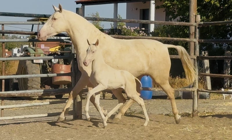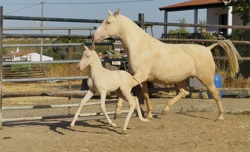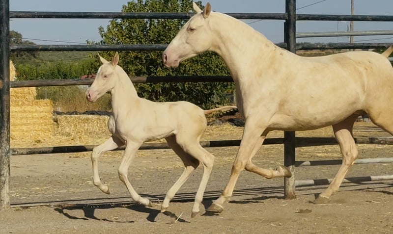 Klacz palomino perla pre Parzona z klaczą kremową (linia Mariscal de Torres) Można zorganizować transport do każdego miejsca na świecie Mamy więcej klaczy na sprzedaż, gniade, kasztanowate z Prl, czarne, palomino, perliny...