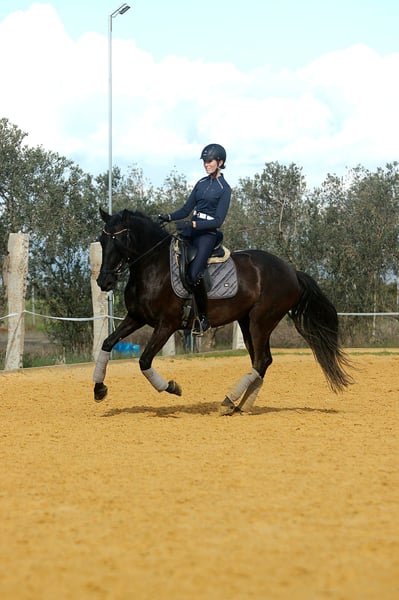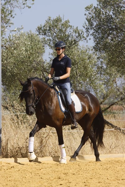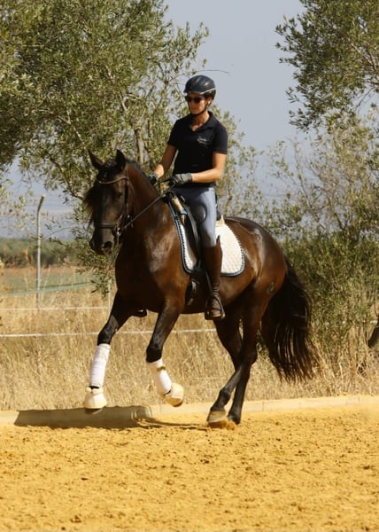 Mandela is an impressive registered PRE mare, born in May 2021. This elegant black mare captivates with her graceful appearance and friendly nature. Standing at 162 cm, she is the ideal companion for leisure riding. She is still growing and appears much larger due to her broad build. Her sire is a proven breeding stallion from Yeguada Militar (Nelson XIII), with over 170 cm in height. Thanks to her pedigree, Mandela is also very interesting for breeding purposes. This young lady is eager to learn and curious, ready to explore the world with her new owner. Over the past few months, she has been gently built up musculally and gradually backed. She now calmly walks the dressage basics, is beginning lateral movements and walk-trot-walk transitions, and has already been ridden in the arena and on the trail. She is friendly, brave, and follows her handler with great trust. She gets along well with other horses, is stabled at night, and is used to being outside during the day, but she is also comfortable staying in a herd overnight. Her balanced temperament and sweet nature make her a perfect partner for both training and relaxed rides or adventures. If you are looking for a loyal, refined leisure partner who impresses with both beauty and character, this PRE mare might be the perfect horse for you. Don’t miss out! The price will increase as her training progresses. ;) She is located with me in Seville, Andalusia. Mandela can be visited by appointment. She can also stay with us for further training. AKU and transport can be arranged. For more information, please contact me in 🇩🇪🇫🇮🇪🇸🇬🇧🇧🇶. -------- For more information about this beautiful 4-year-old PRE mare, please get in touch with me!