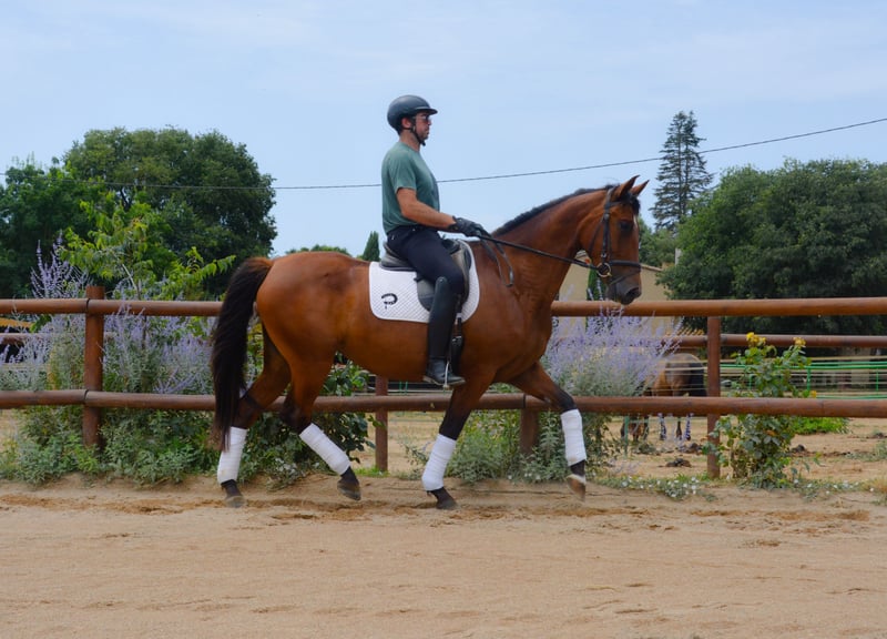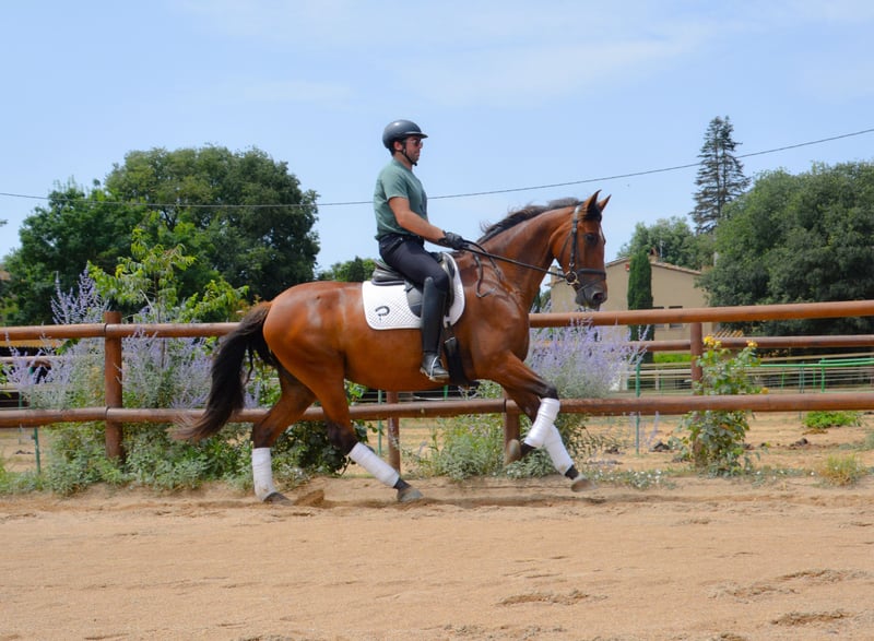 Jument de 4 ans avec un bon caractère, montée en carrière et sortant en extérieur, 166 cm de hauteur.