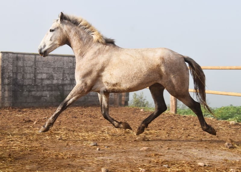 dear character, curious, people-oriented, untrained, lunged, stands outside with other mares, tall, good movement and lineage, lineage: Plaza de Armas, Yeguada Militar, Yeguada Vilaire, grandfather Judio VII is qualified www.elegante-andalusier.com