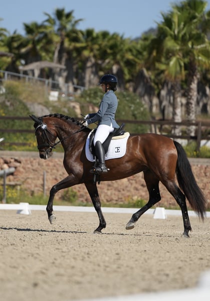 Belle pouliche PRE, âgée de 4 ans, avec un niveau 1 de dressage. Super caractère en piste avec d'autres chevaux, à la campagne, avec le maréchal-ferrant et lors du transport. Elle est très disposée au travail et a beaucoup d'énergie, ainsi qu'un super caractère. C'est une bonne jument d'avenir pour le sport. Elle a des plaques OK et est négative au Piro.