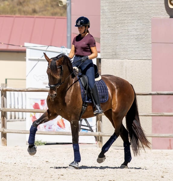 Beautiful PRE filly, 4 years old, with level 1 in dressage. Super character in the arena with other horses, in the field, with the farrier, and during transport. She is very willing to work and has a lot of energy, and a great temperament. She is a good mare for the future in sports. She has OK plates and is negative for Piro.